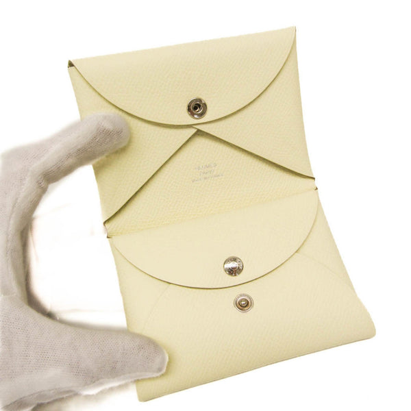 Hermes Calvi Duo Chevre 082977CK Epsom Leather Card Case Cream