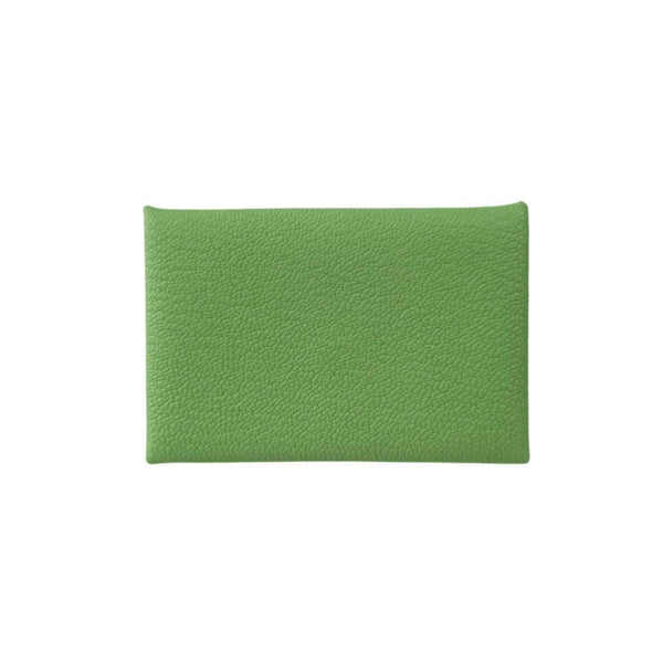 HERMES Calvi Vert Cricket Chevre Wallet/Coin Case for Men and Women, Double Stamped