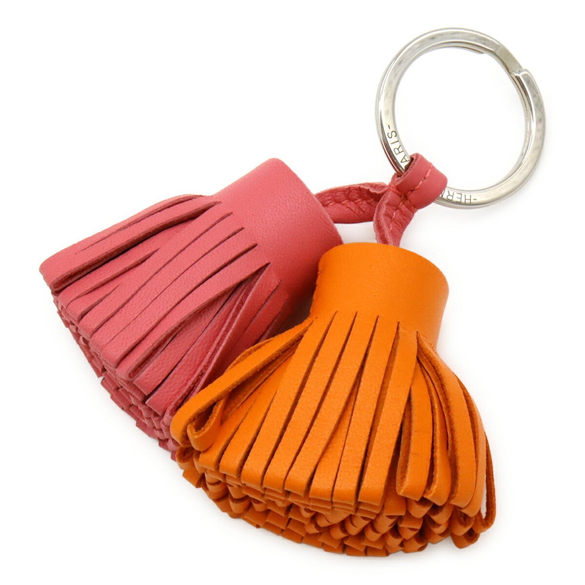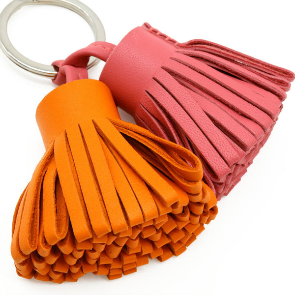 HERMES Carmen Unodos Key Ring Keychain Tassel Charm Annu Milo Leather Orange Pink