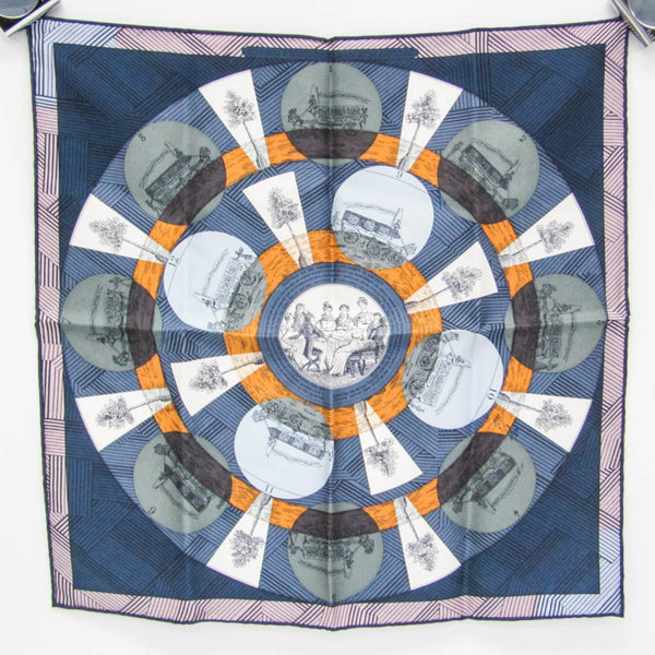 Hermes Carré 40 JEU DES OMNIBUS REMIX Women\'s Silk Scarf Blue,Green,Orange