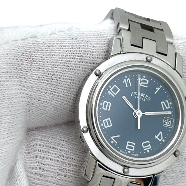 HERMES Clipper CL4.210 Stainless Steel Women's Watch with Quartz Movement and Blue Dial