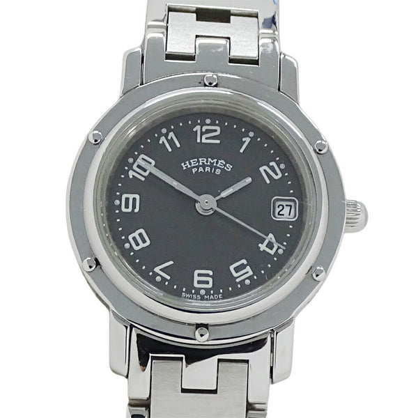 Hermès Clipper Date Quartz Stainless Steel Watch CL4.210, Silver Gray, Polished
