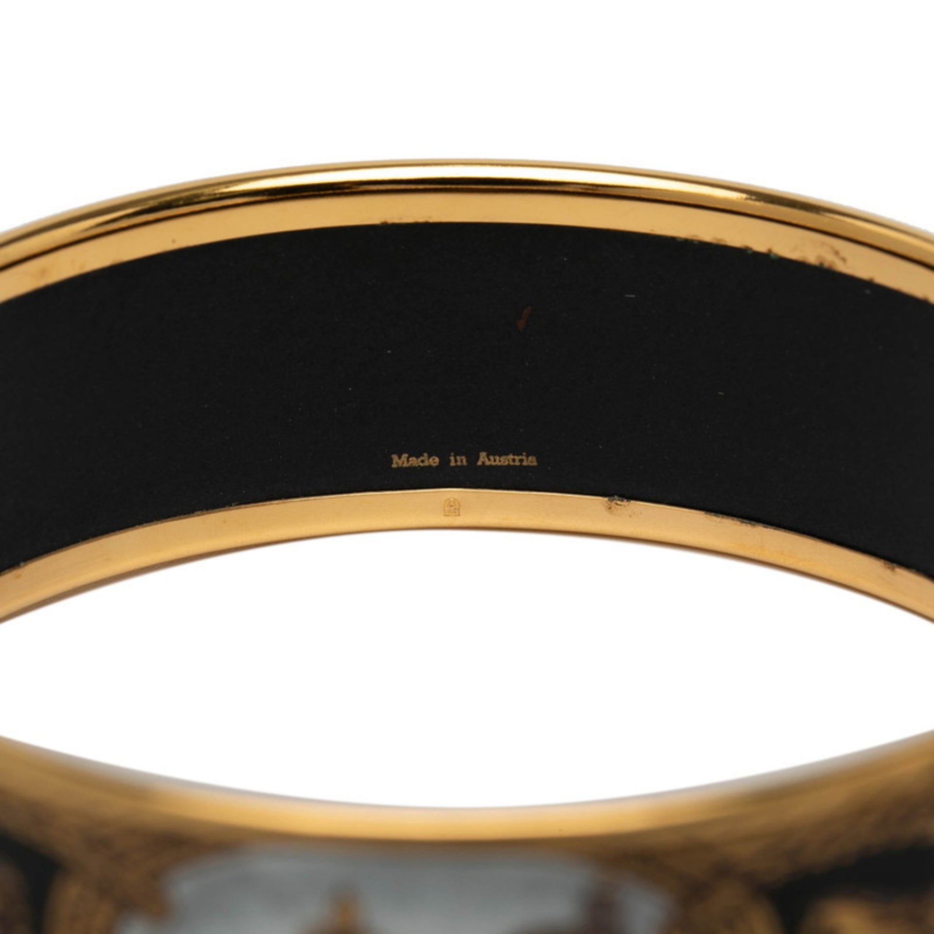 Hermes enamel horse tassel motif bangle in gold, black, and multicolored plating for women.