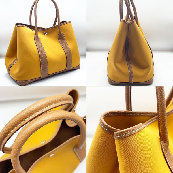 Hermes Garden PM C stamp Saffron x Gold Toile Officier Negonda Tote Bag HERMES