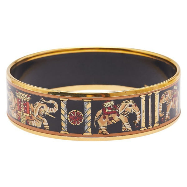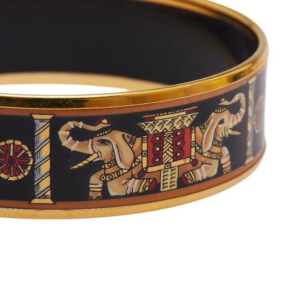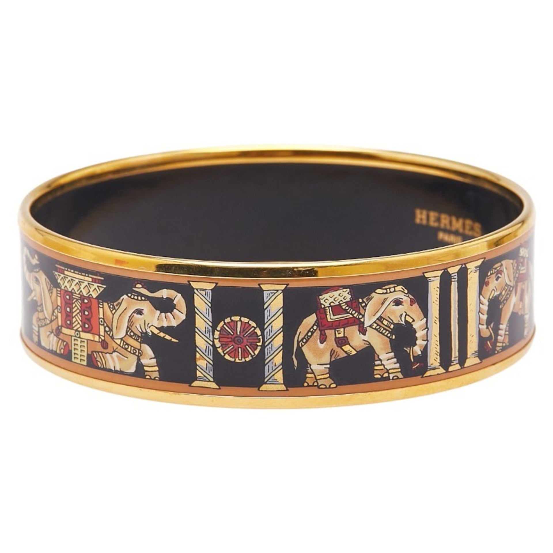 Hermes GM Enamel Statue Cloisonné Bangle in Gold and Multicolor Plated for Women