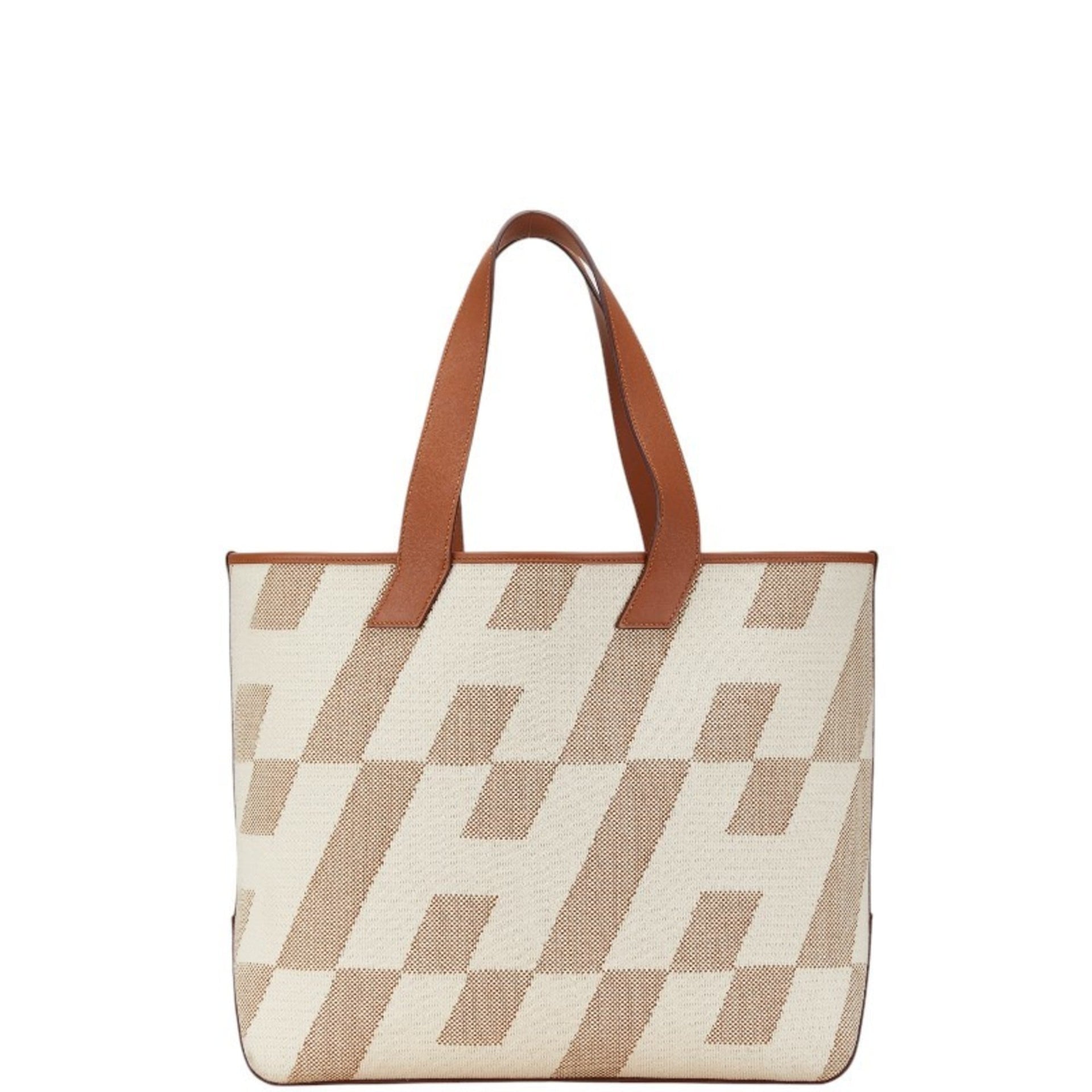 Hermes H Ambié GM Tote Bag Beige Brown Toile Leather Women\'s HERMES