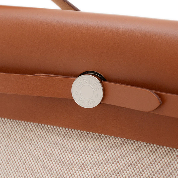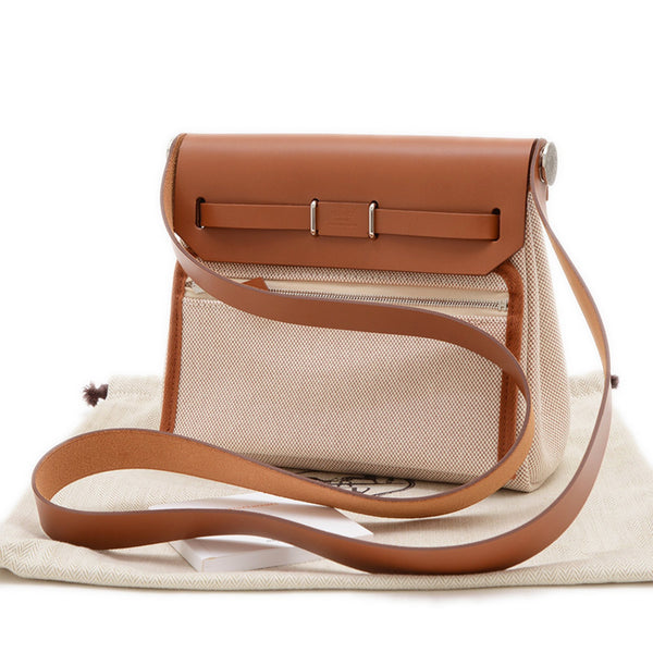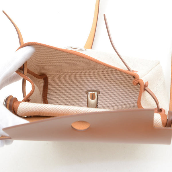 Hermes Hermès Airbag Mini 20 Shoulder Bag in Toile Ecru Fauve with Silver Hardware, K Stamp, BP