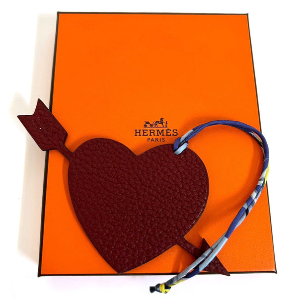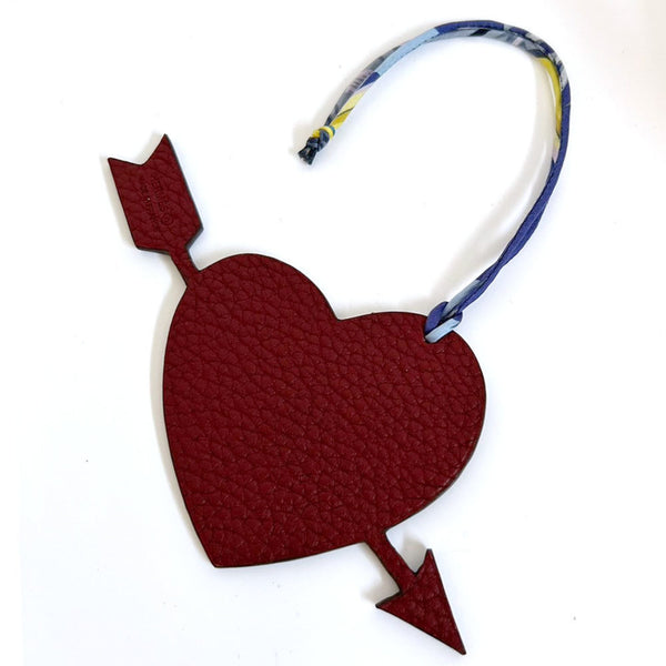 Hermes HERMES Bag Charm Petite H Heart Arrow Bordeaux Black Epson Togo Women's Keychain Leather