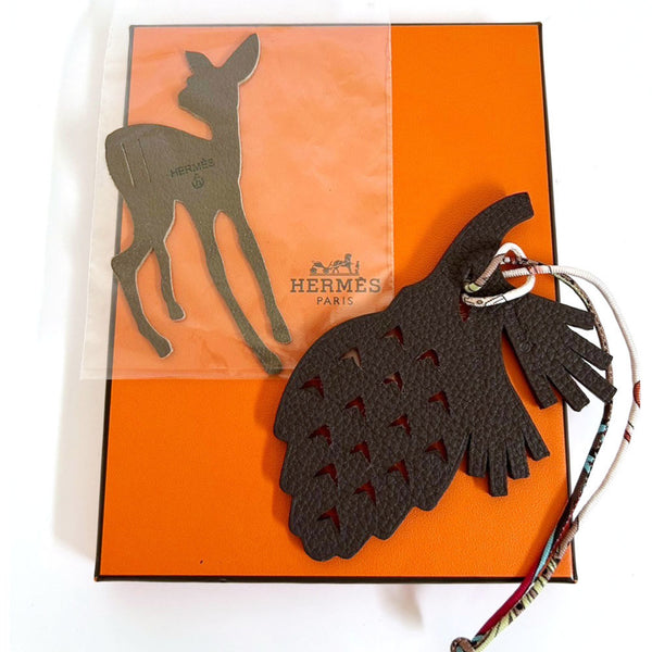 Hermes HERMES Bag Charm Petite H Pine Cone Purple Dark Brown Epson Taurillon Clemence Women's Keychain Leather