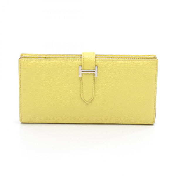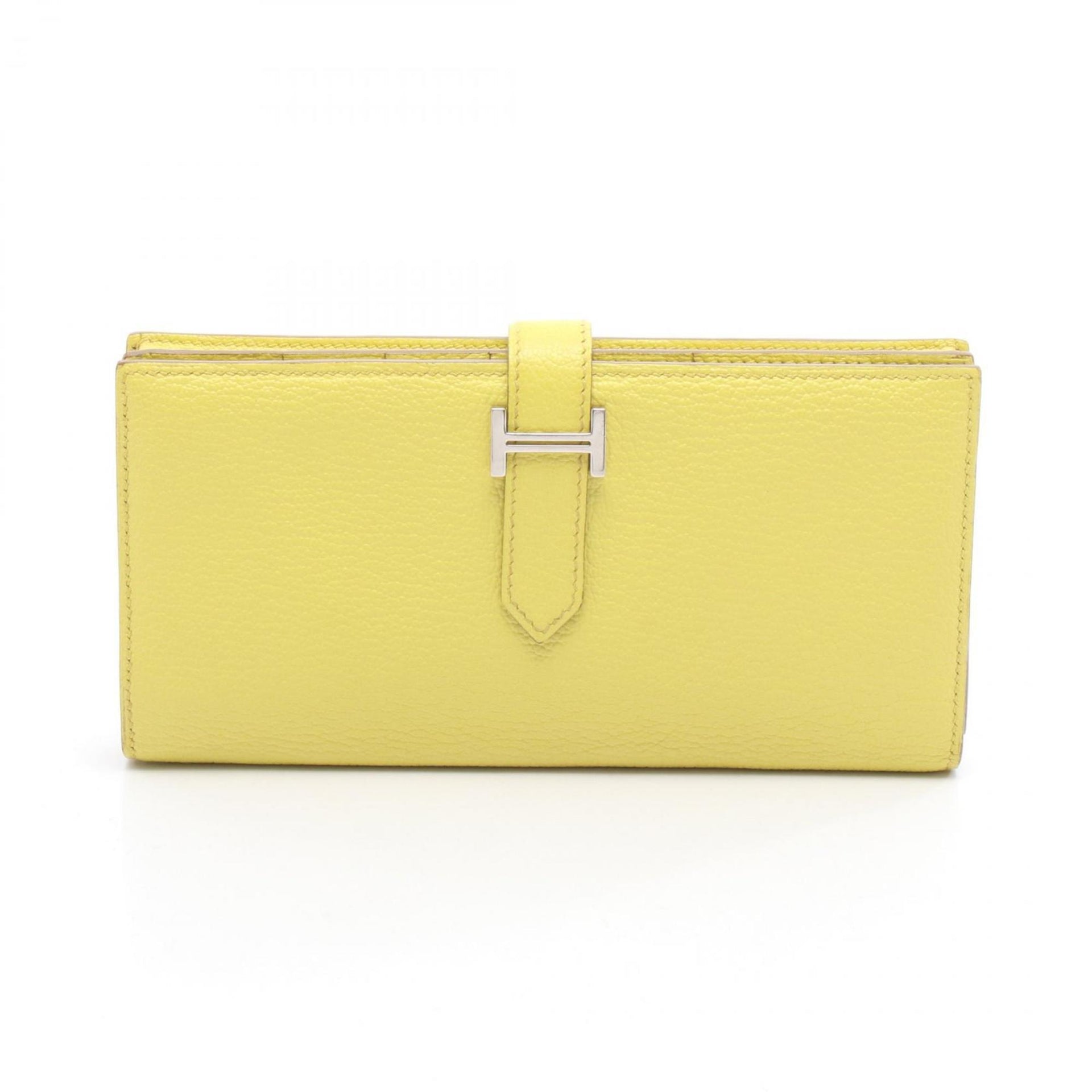 Hermes Hermès Bearn Soufflet Bi-fold Long Wallet, Leather, Chevre, Women\'s, Yellow