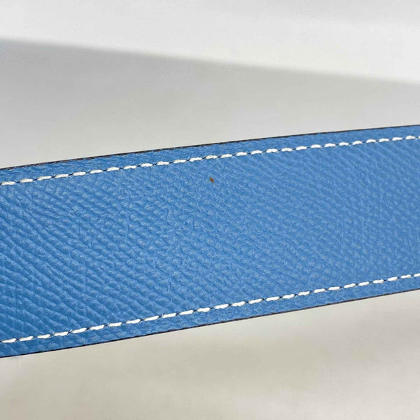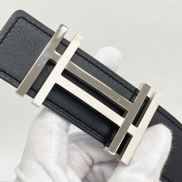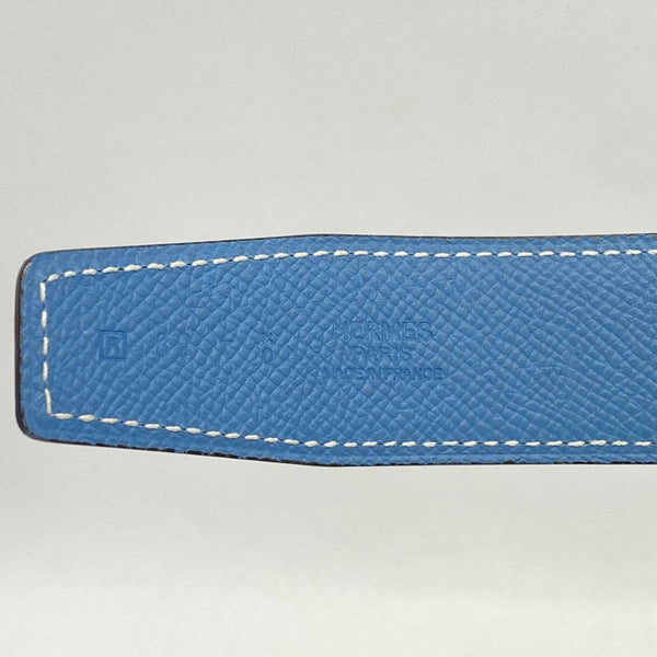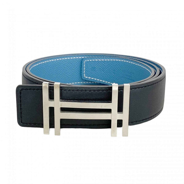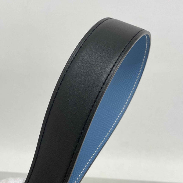 Hermes Hermès Belt, Hokare, Veau Epsom Leather, Chamonix, Black, Blue Jean, R Stamp, Men\'s/Women\'s