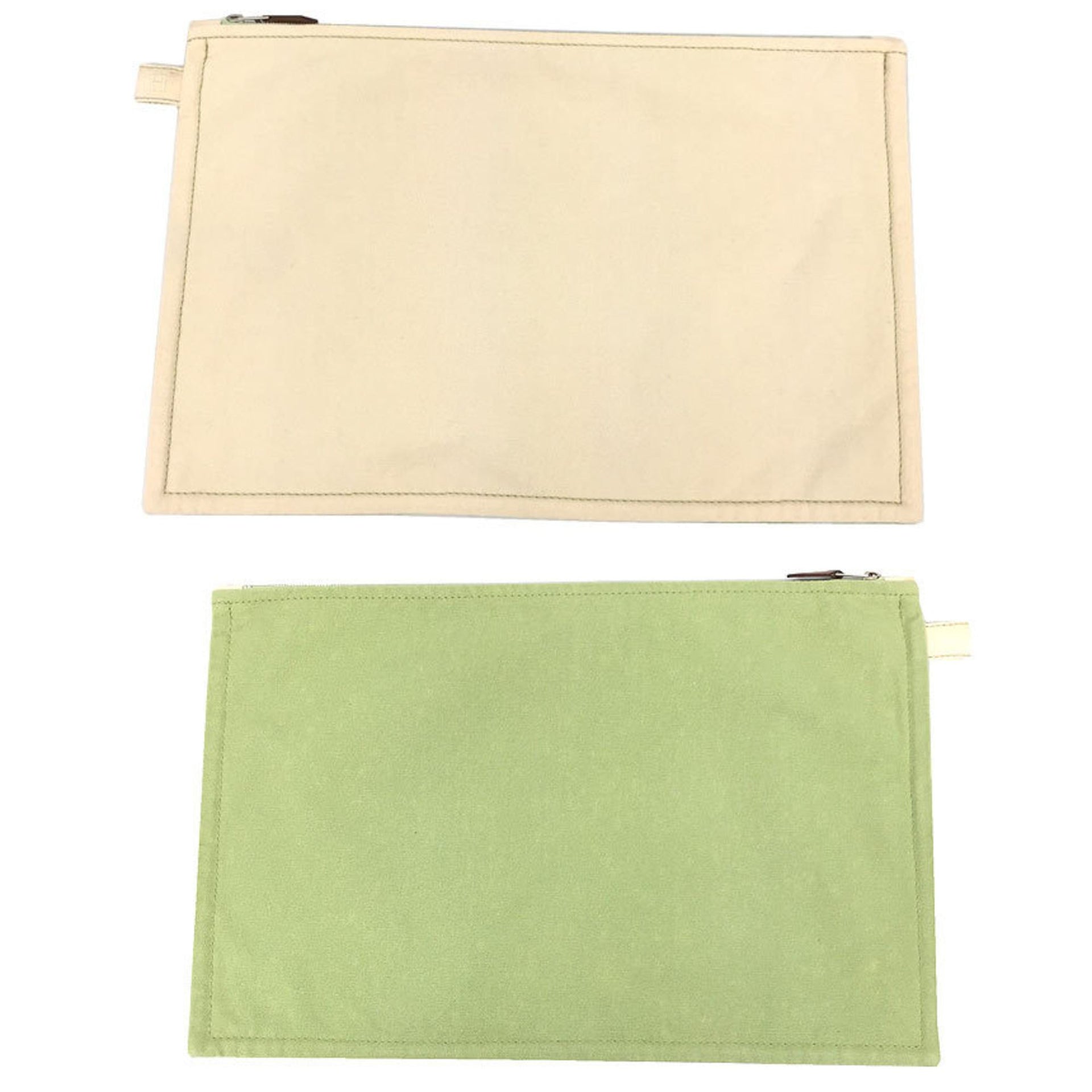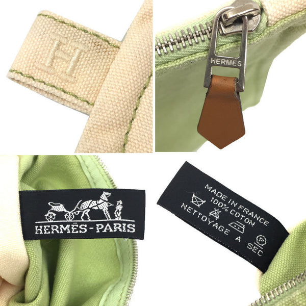 Hermes HERMES Bora Pouch GM Bicolor Flat Clutch Bag Cotton Canvas Lime Green