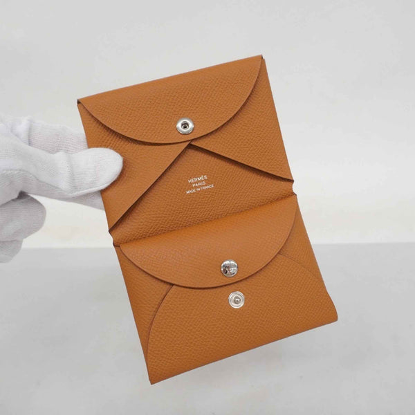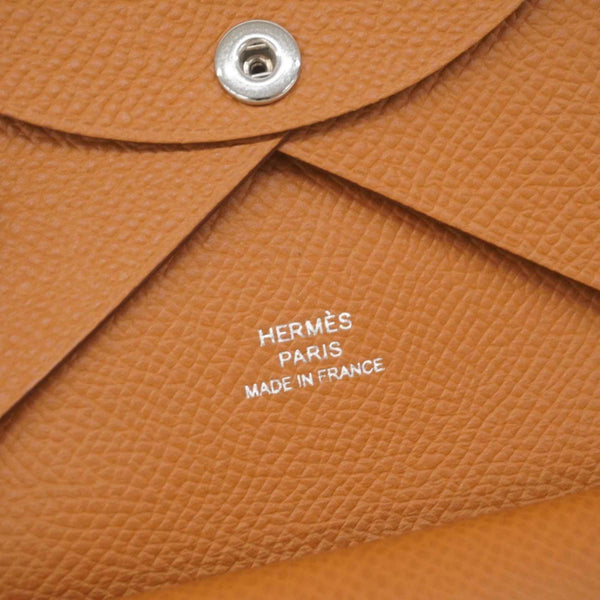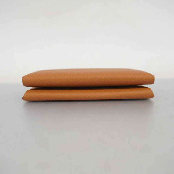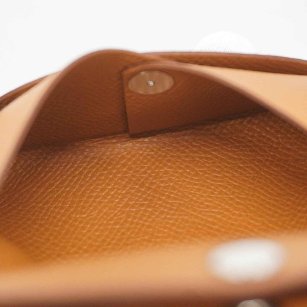 Hermes Hermès Calvi Duo Wallet/Coin Case, Epsom Leather, Gold, Double Stamp, Men\'s/Women\'s