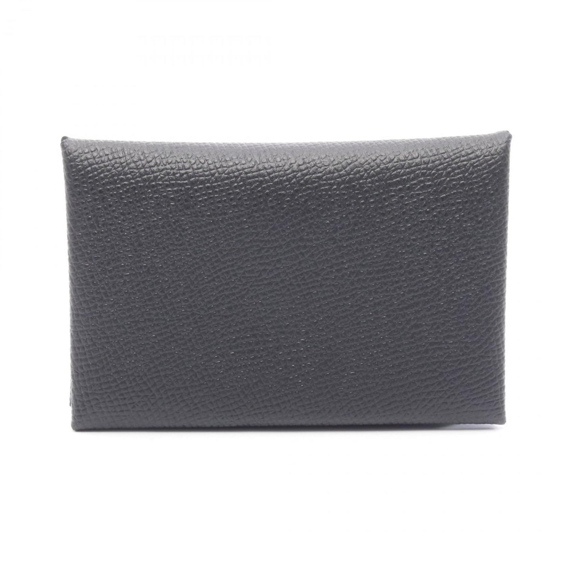 Hermes HERMES Calvi Wallet/Coin Case Wallet Calfskin (Cowhide) Veau Epsom Leather Women\'s Black