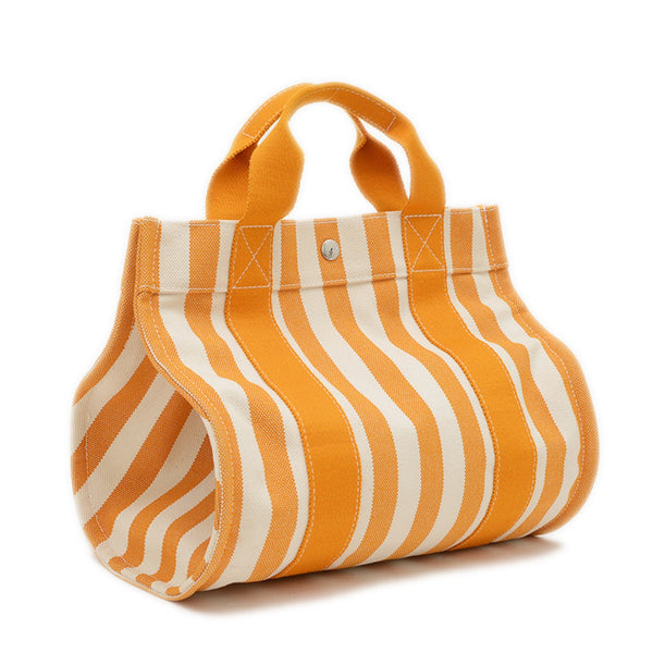 Hermes Hermès Cannes PM Tote Bag Canvas Orange White BP