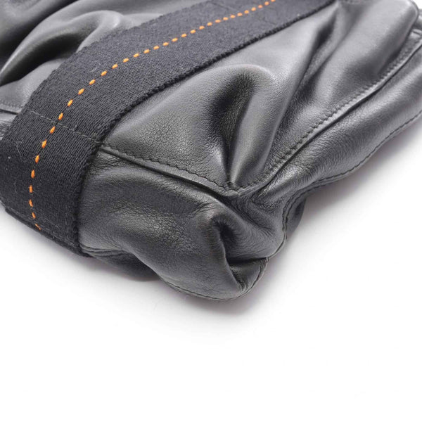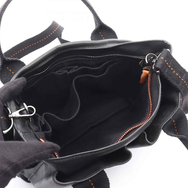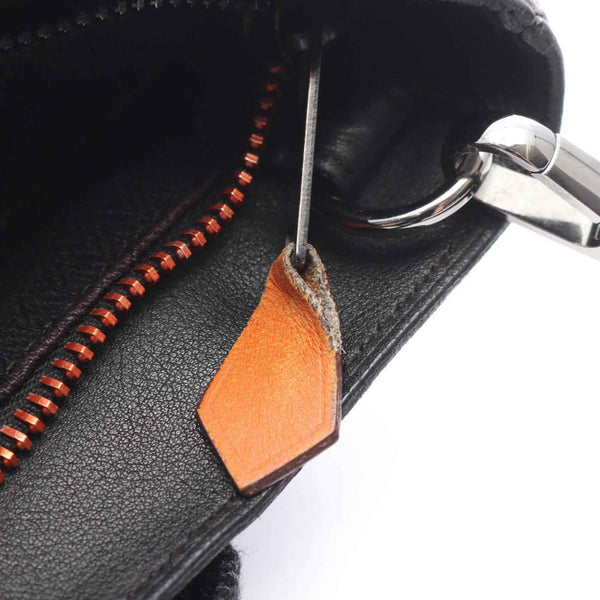 Hermes Hermès Caravan Horizontal PM Handbag, Leather, Veau-Derma, Women\'s, Black, Orange