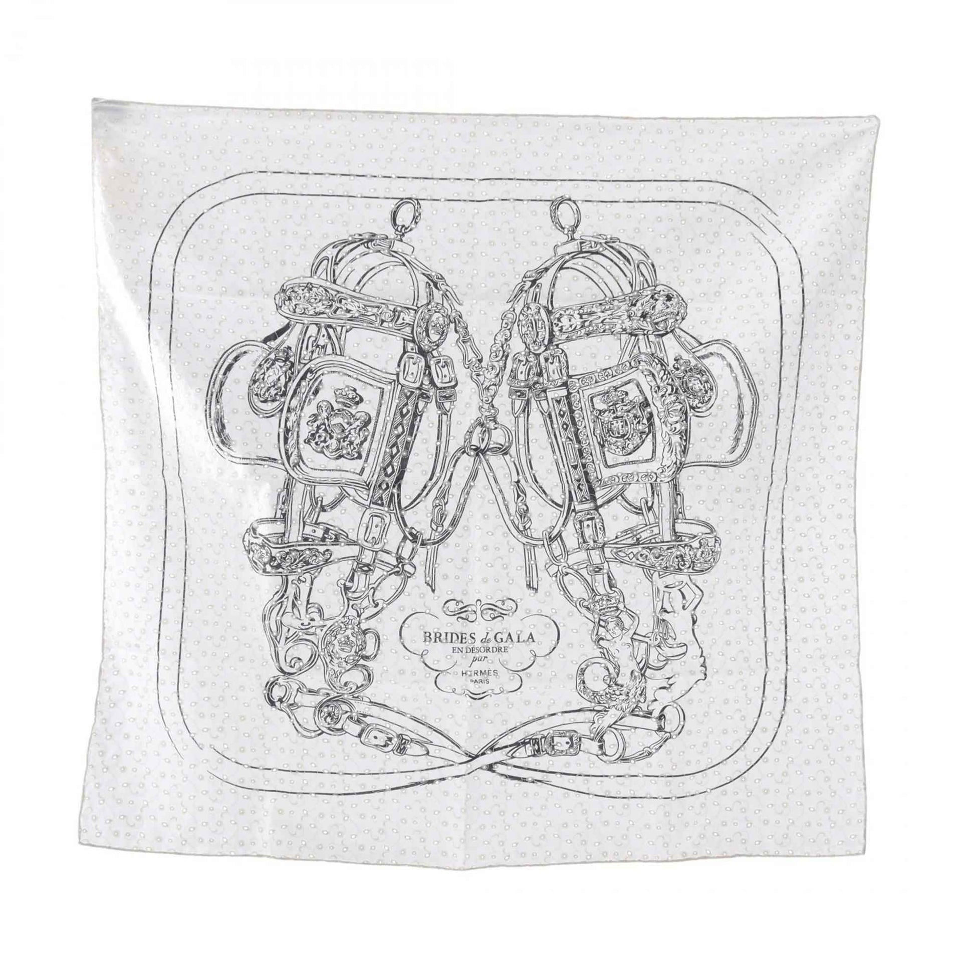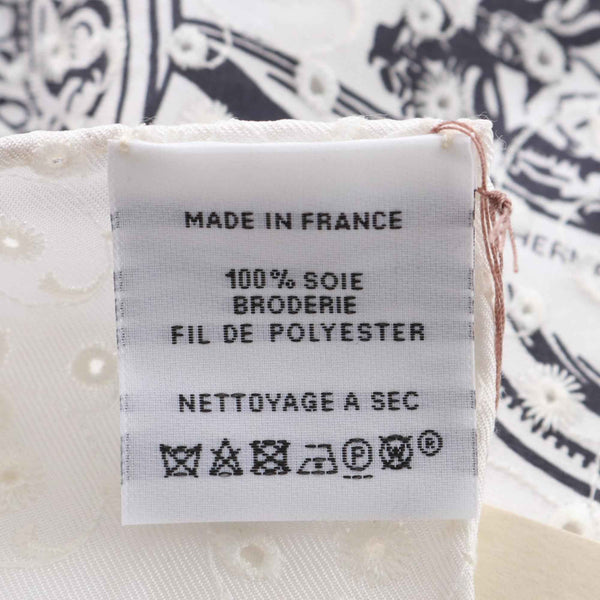 Hermès HERMES Carré 70 English Embroidery BRIDES de GALA en Desordre Silk Scarf Women\'s White and Black