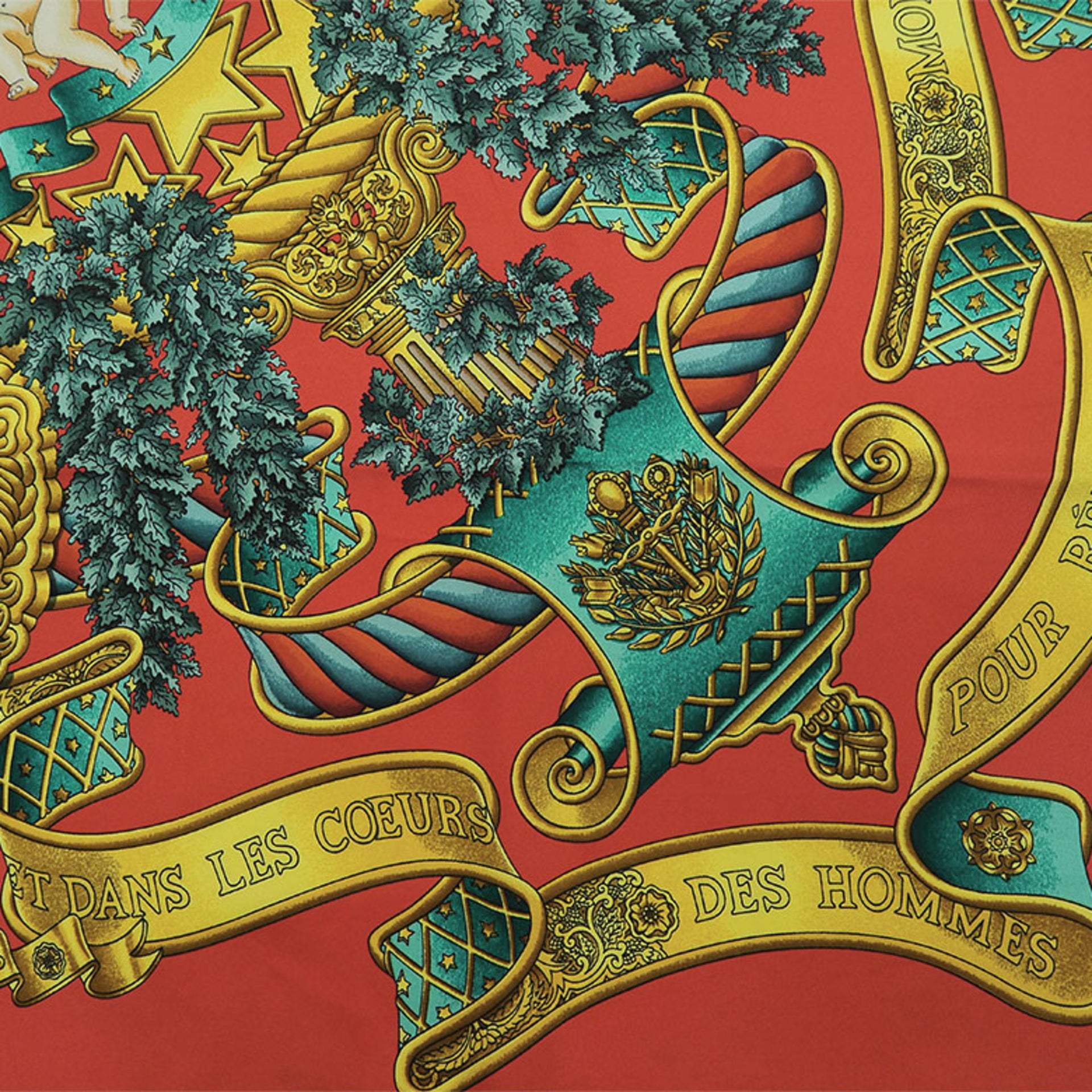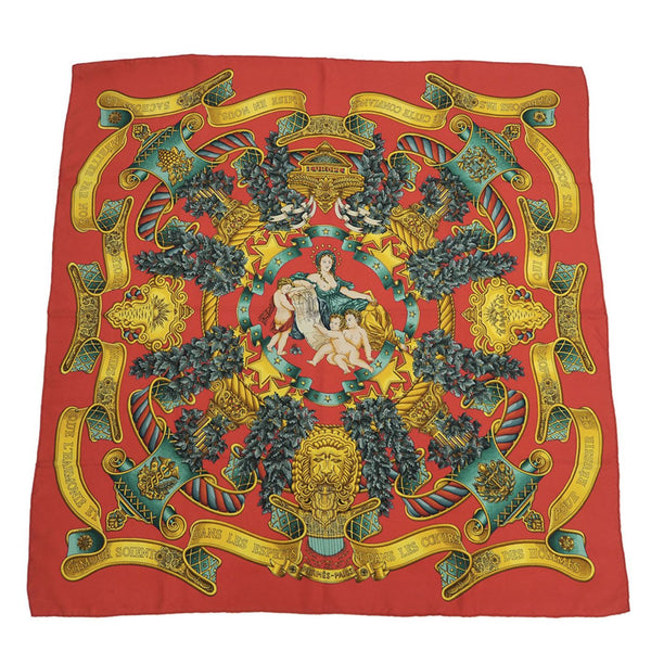 HERMES Hermes Carre 90 EUROPE European Goddess Children Red x Green Scarf Muffler Rectangle