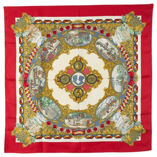 Hermes Hermès Carré 90 \"LENTENTE CORDIALE\" Scarf, Red, Beige, Multicolor, Silk, Women\'s