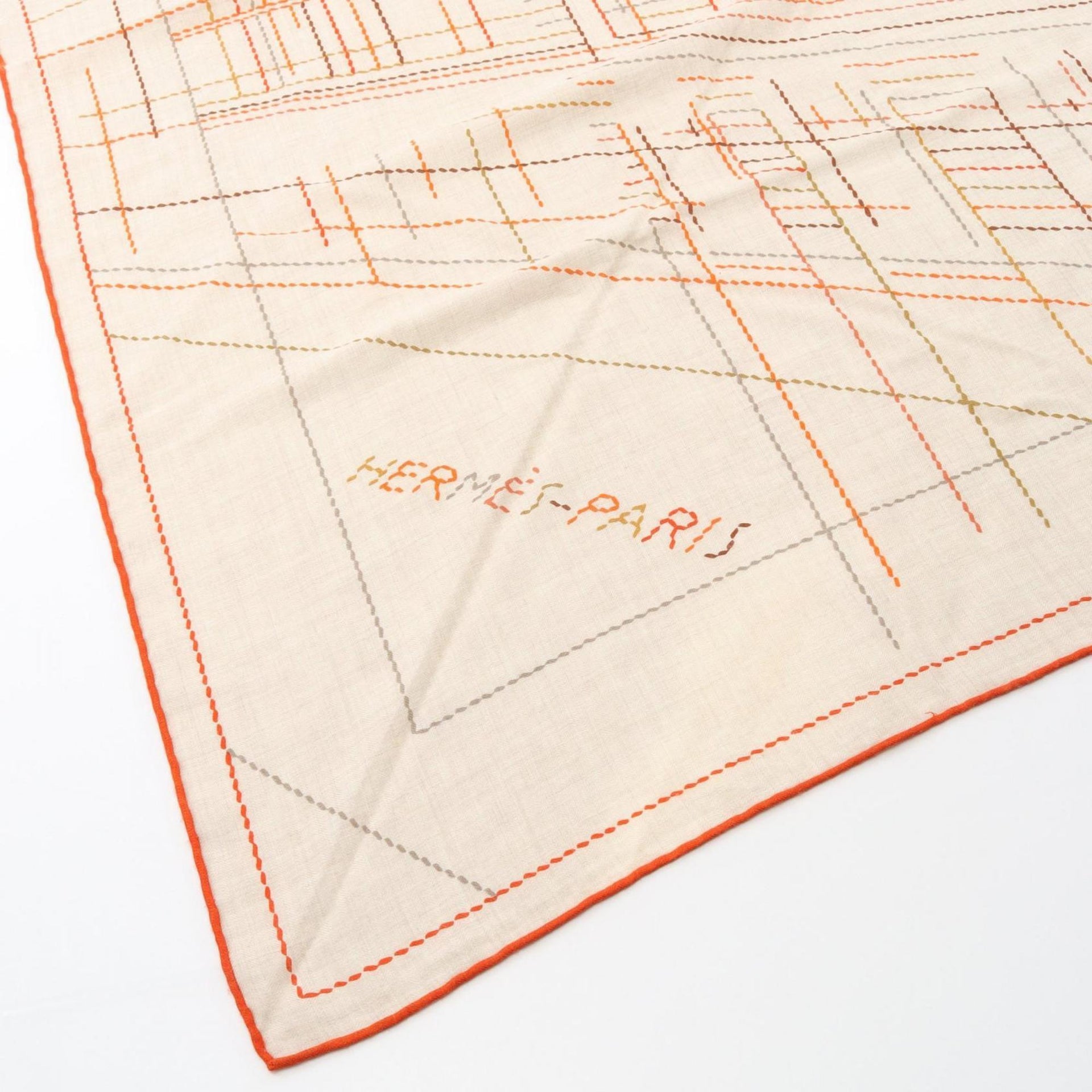Hermes Hermès Carré Jean 140 Pique Sellier Scarf, Silk, Cashmere, Beige, Multicolor