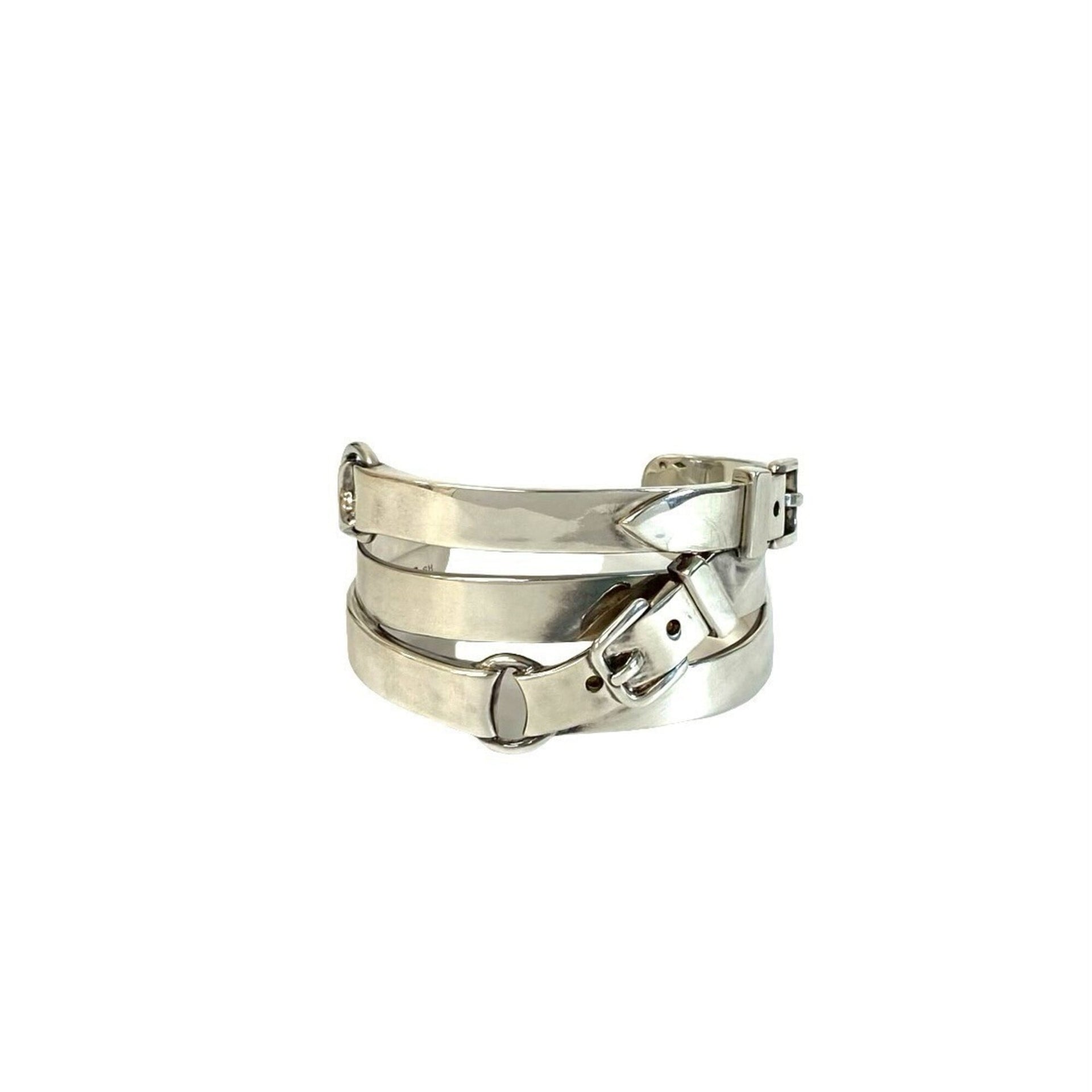 HERMES Hermes Ceinture Triple Strap Belt Sterling Silver 925 Bangle Bracelet Accessory 480-3