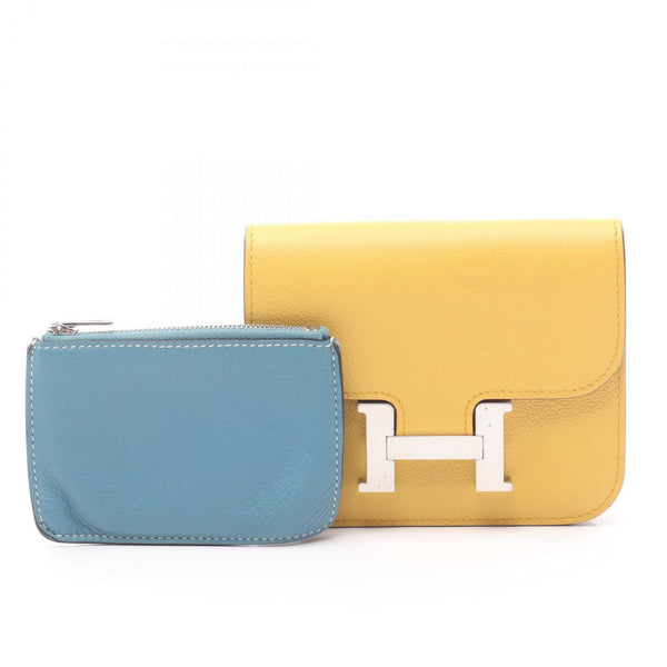 Hermes Hermès Constance Slim Bifold Wallet, Leather, Evercolor, Women's, Yellow, Blue, New Blue Jean