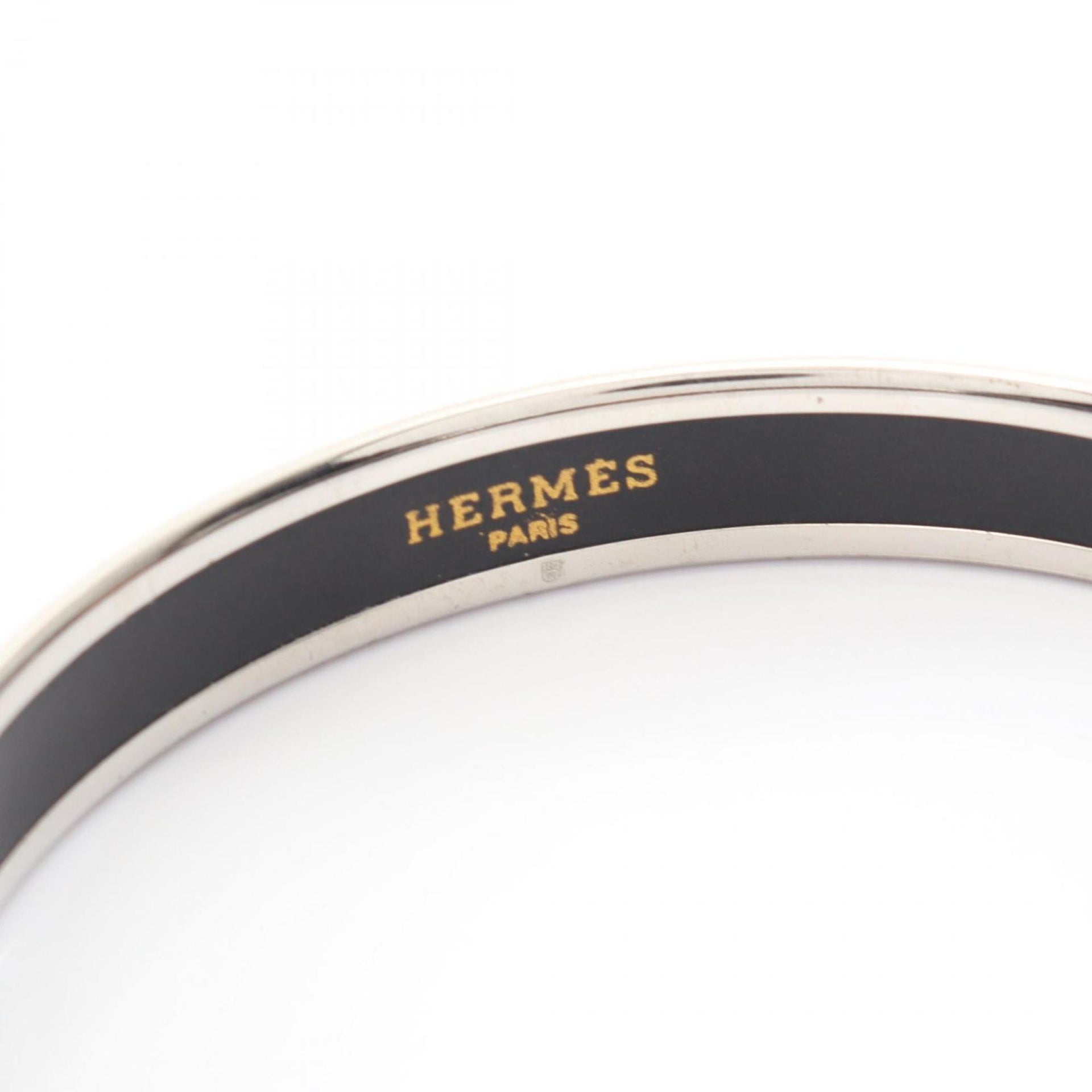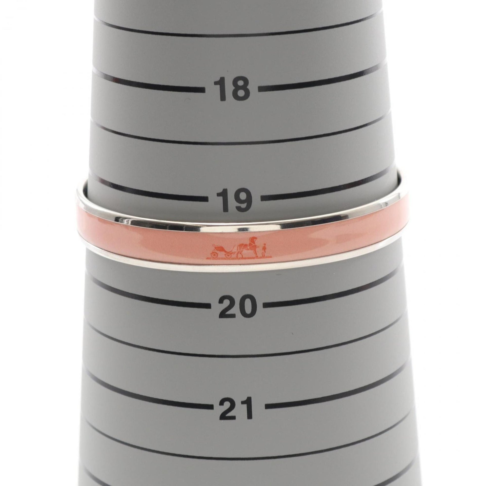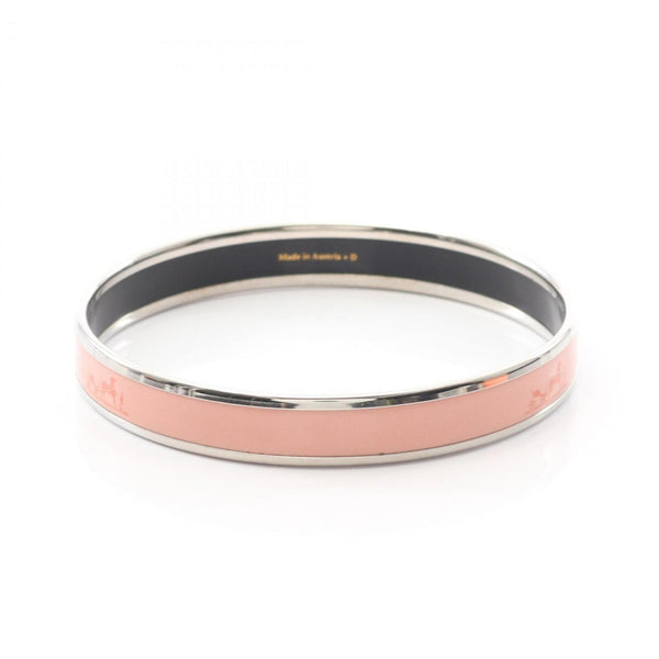 Hermes Hermès enamel PM bangle accessory in stainless steel with cloisonné detailing, available silver and pink.
