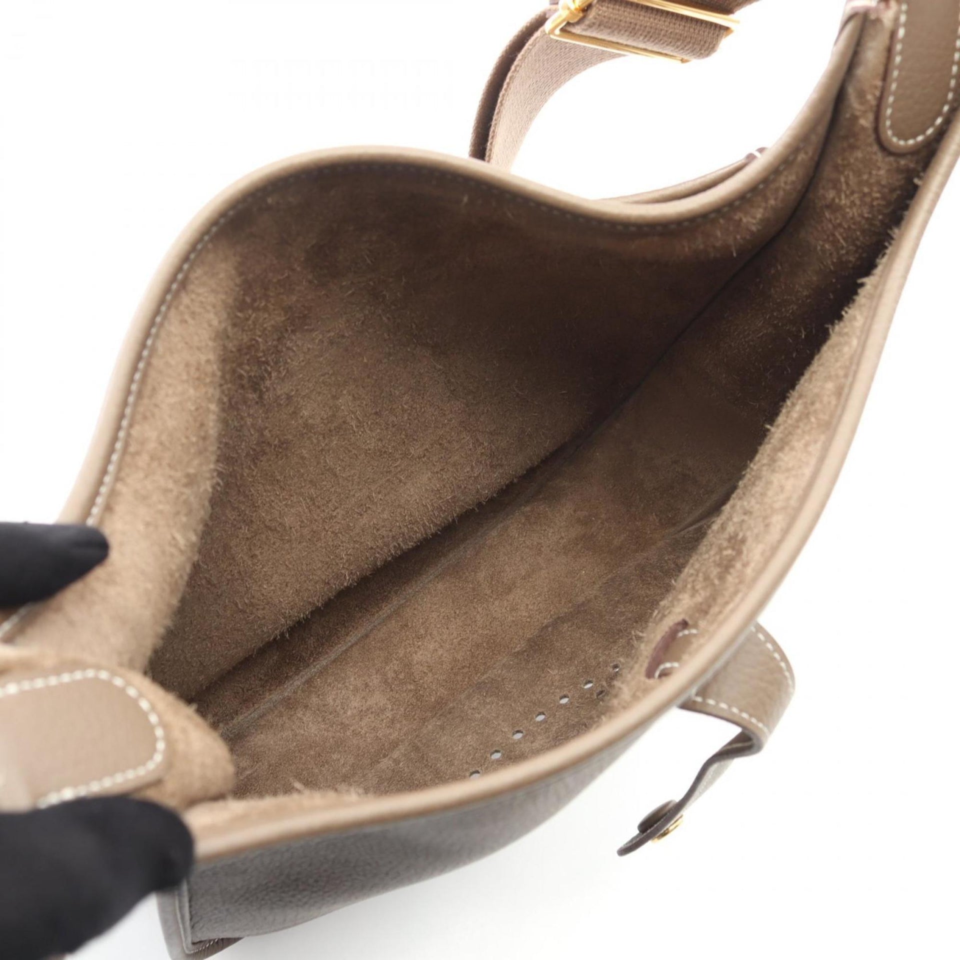 Hermes Hermès Evelyn 3 Trois PM Etoupe Shoulder Bag in Taurillon Clemence Leather, Brown, for Women