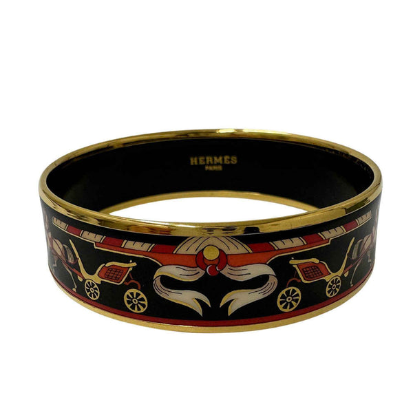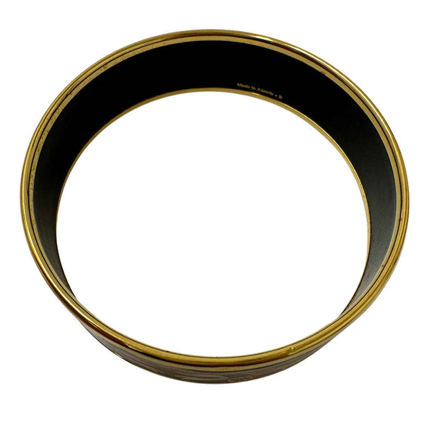 Hermes Hermès GM Enameled Bangle, Women\'s, GP Black Gold Cloisonne, Horse Bracelet