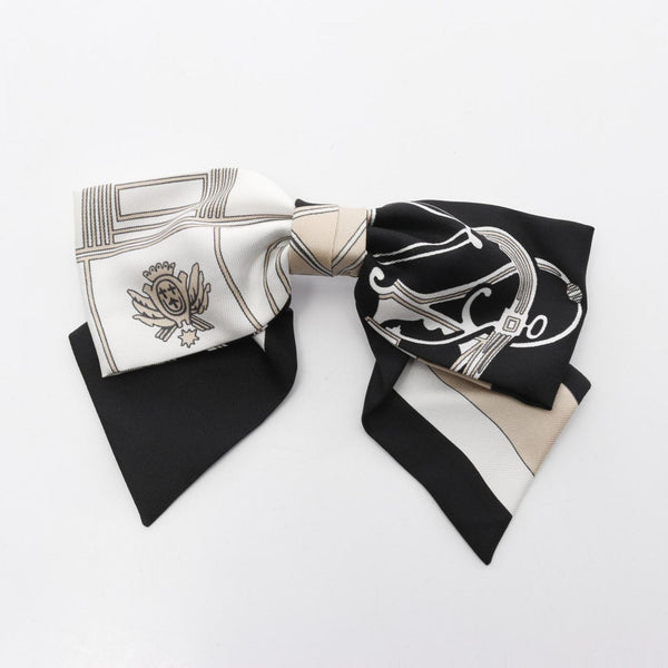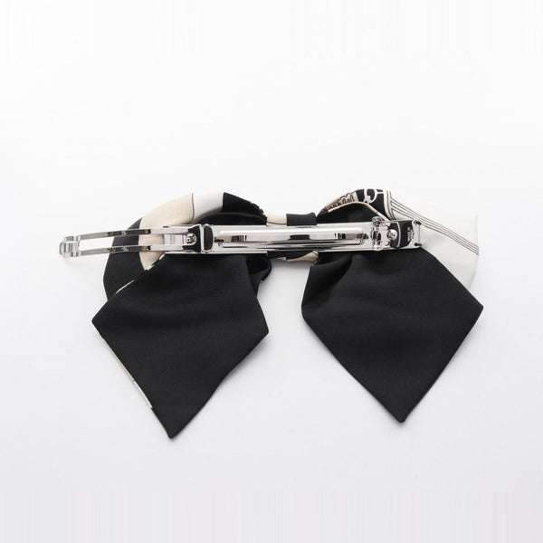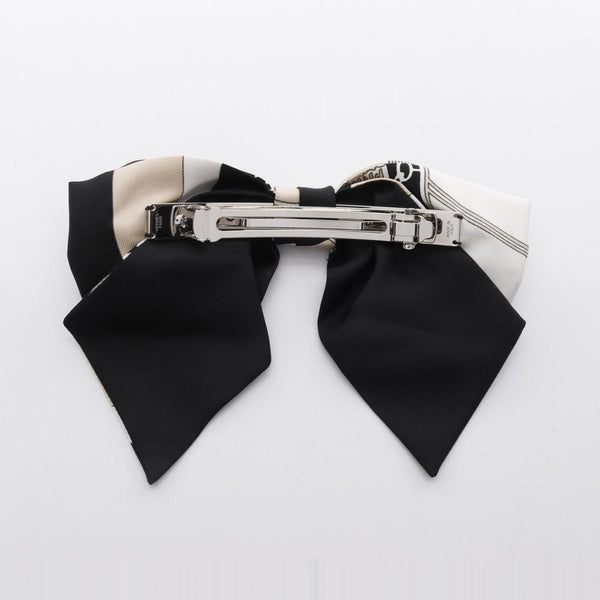 Hermes Hermès Grenelle EX-LIBRIS barrette accessory, silk, for women, in black, white, and beige.