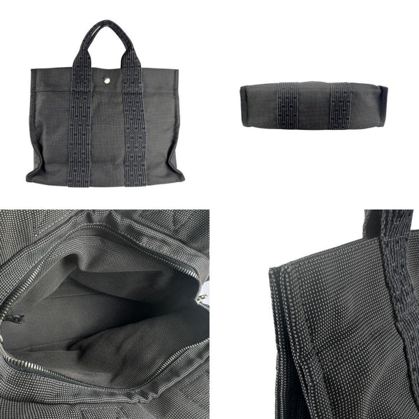 Hermes HERMES Handbag Tote Bag Air Line Canvas Dark Gray Silver Men\'s Women\'s n1198