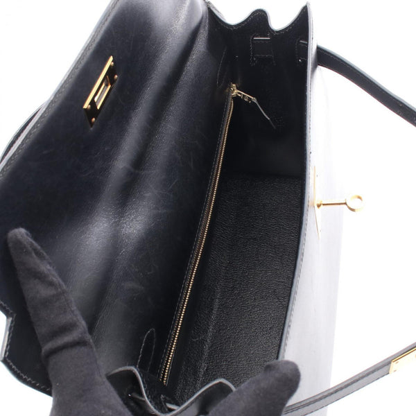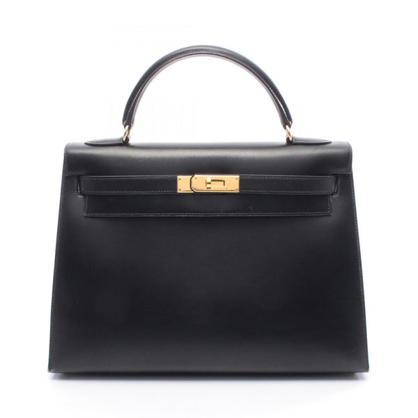 Hermes Hermès Kelly 32 handbag in calfskin box calf leather, black.