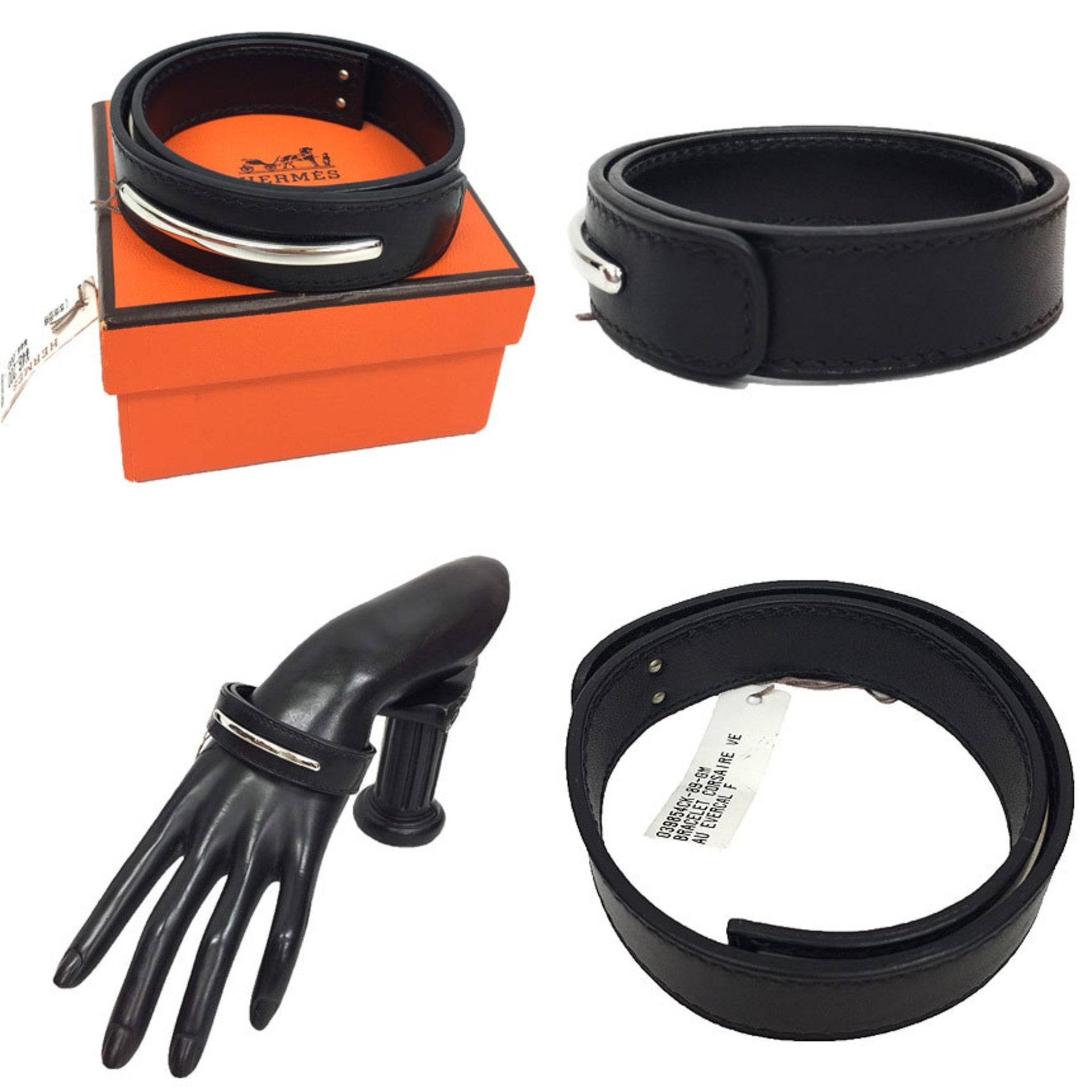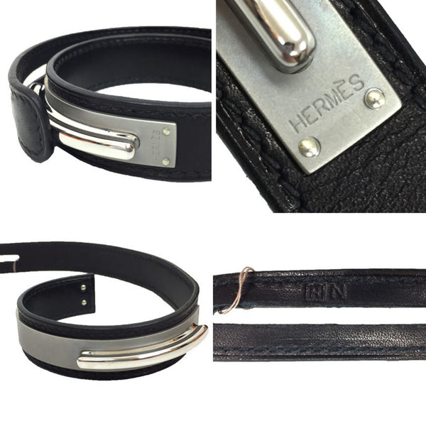 Hermes HERMES Leather Bracelet Corsair 039854CK-89-GM BRACELET CORSAIRE Black H engraved Men\'s and women\'s bracelet