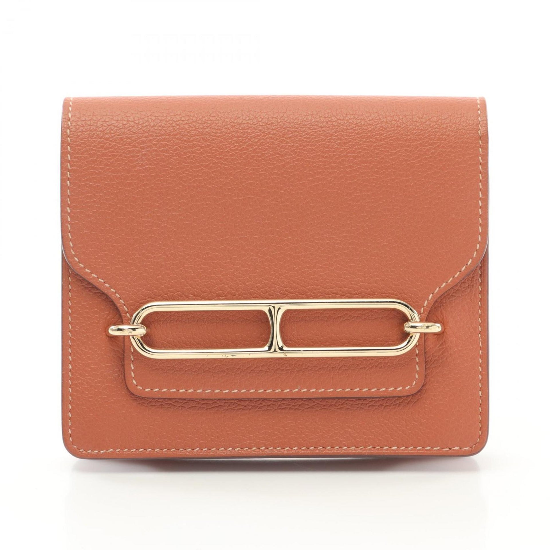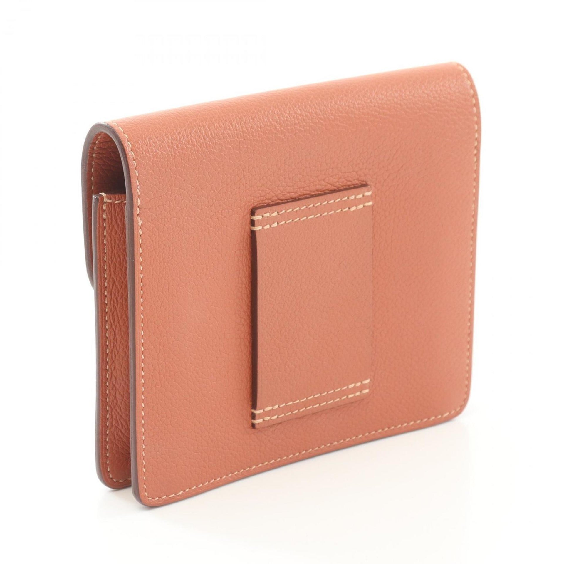 Hermes HERMES Louris Brush Blue Frida Bi-fold Wallet Evercolor Women\'s Brown