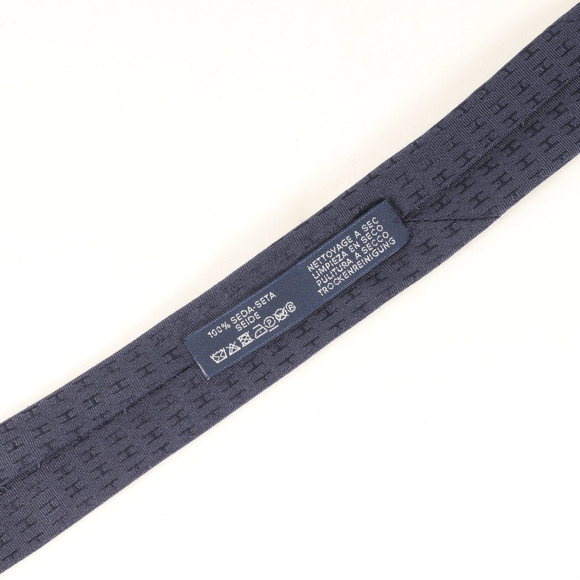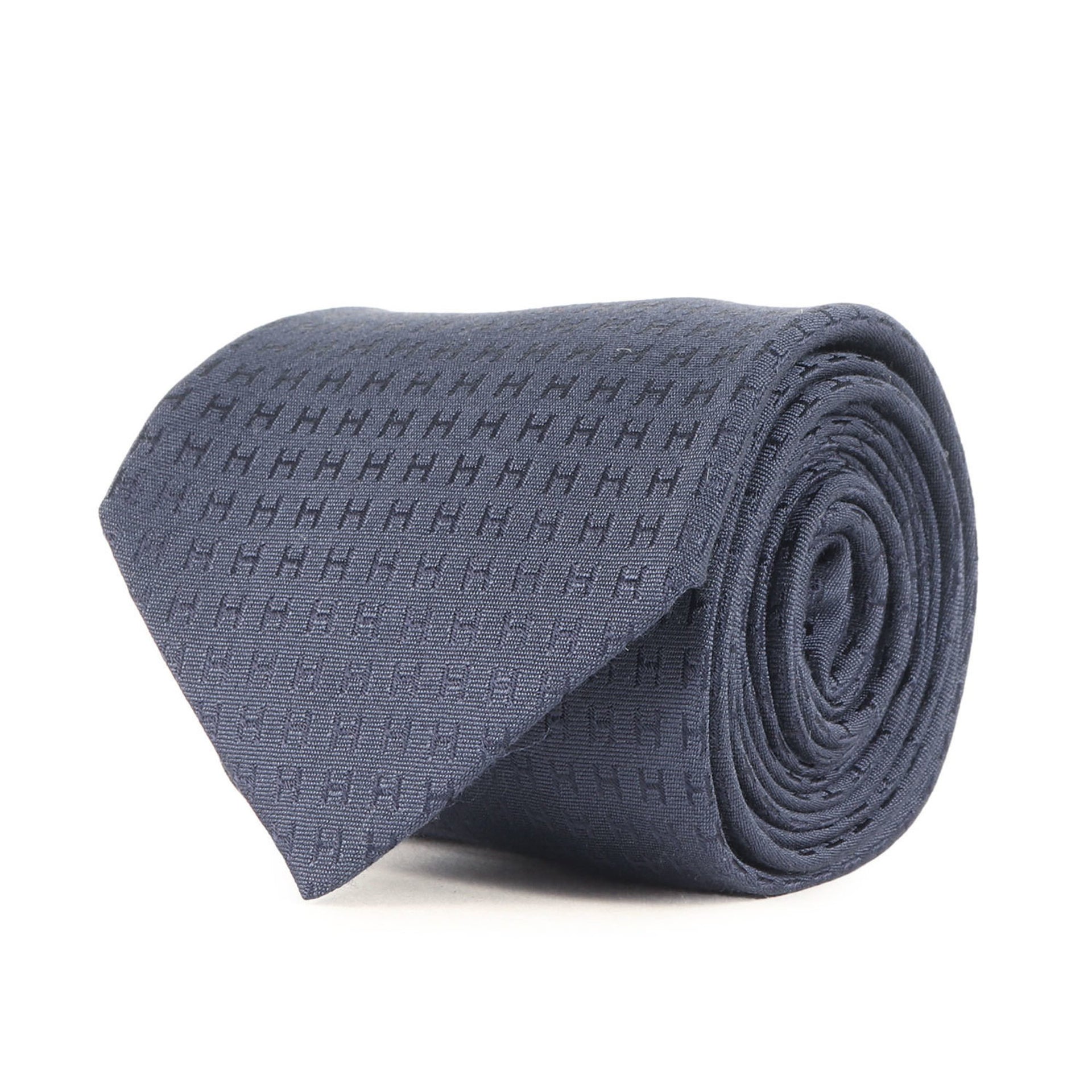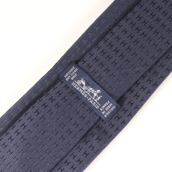 HERMES Hermès Navy Blue Jacquard Silk Tie, Made in France, Men\'s
