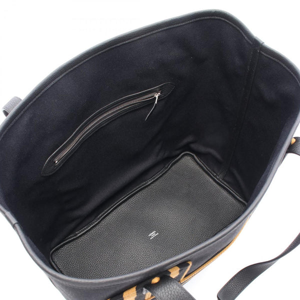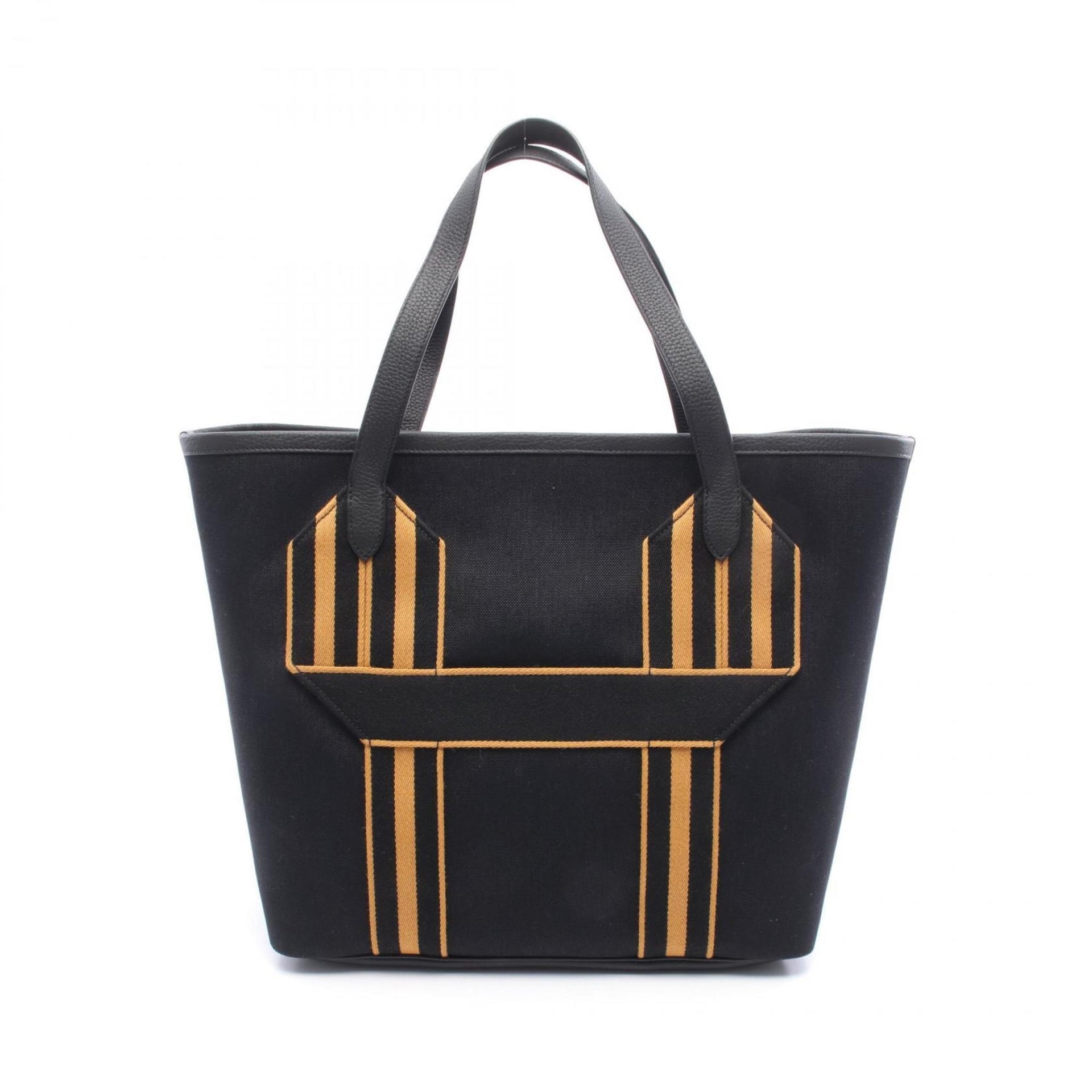 Hermes Hermès Pur Sangle Tote Bag, Canvas Toile Militaire, Taurillon Clemence Women\'s, Black, Brown
