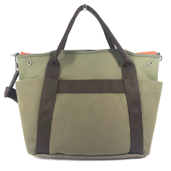 HERMES Hermes Sac de Pansage Groom 2WAY Shoulder Bag Crossbody Tote Leather Canvas Women\'s Khaki