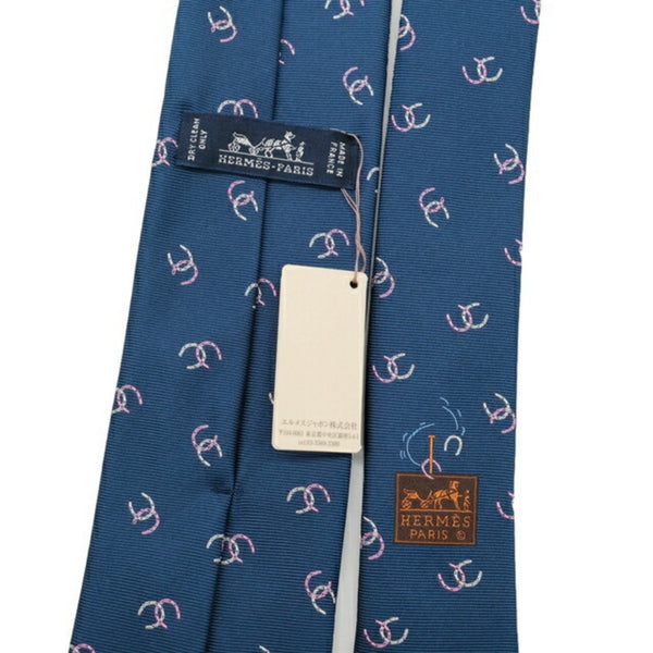 HERMES Hermes Tie Horseshoe Lucky 100% Silk Blue Pink