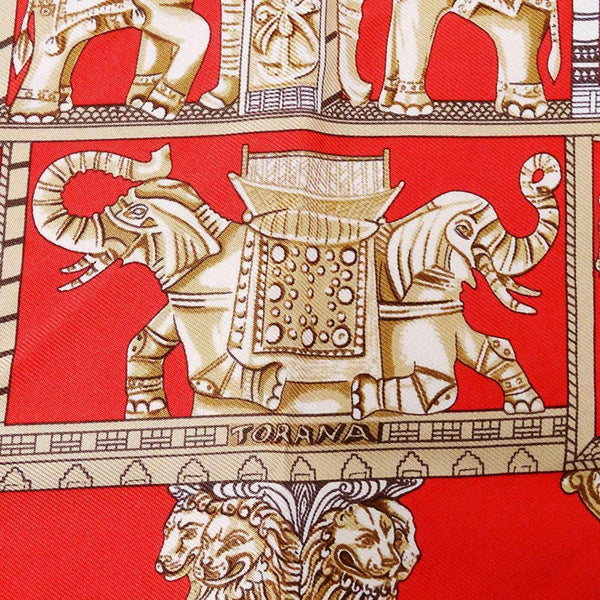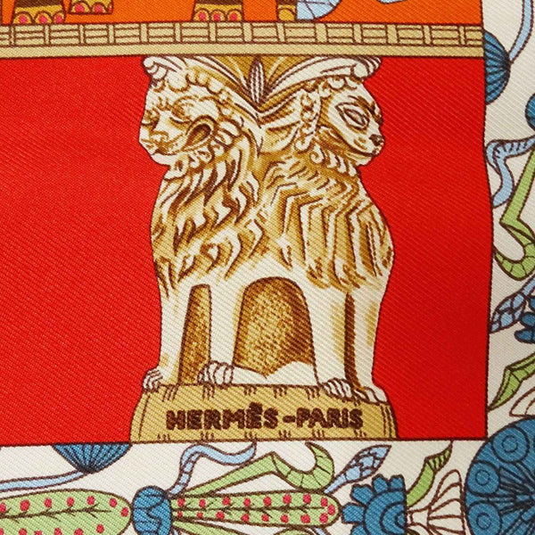 Hermes Hermès TORANA Scarf, Women\'s, Petit Carré, Silk, Red, Vivid Egyptian Sculpture