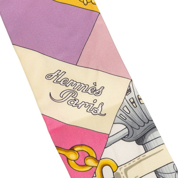 Hermes Hermès Twilly Cliquetis Scarf/Muffler in White and Multicolored Silk for Women