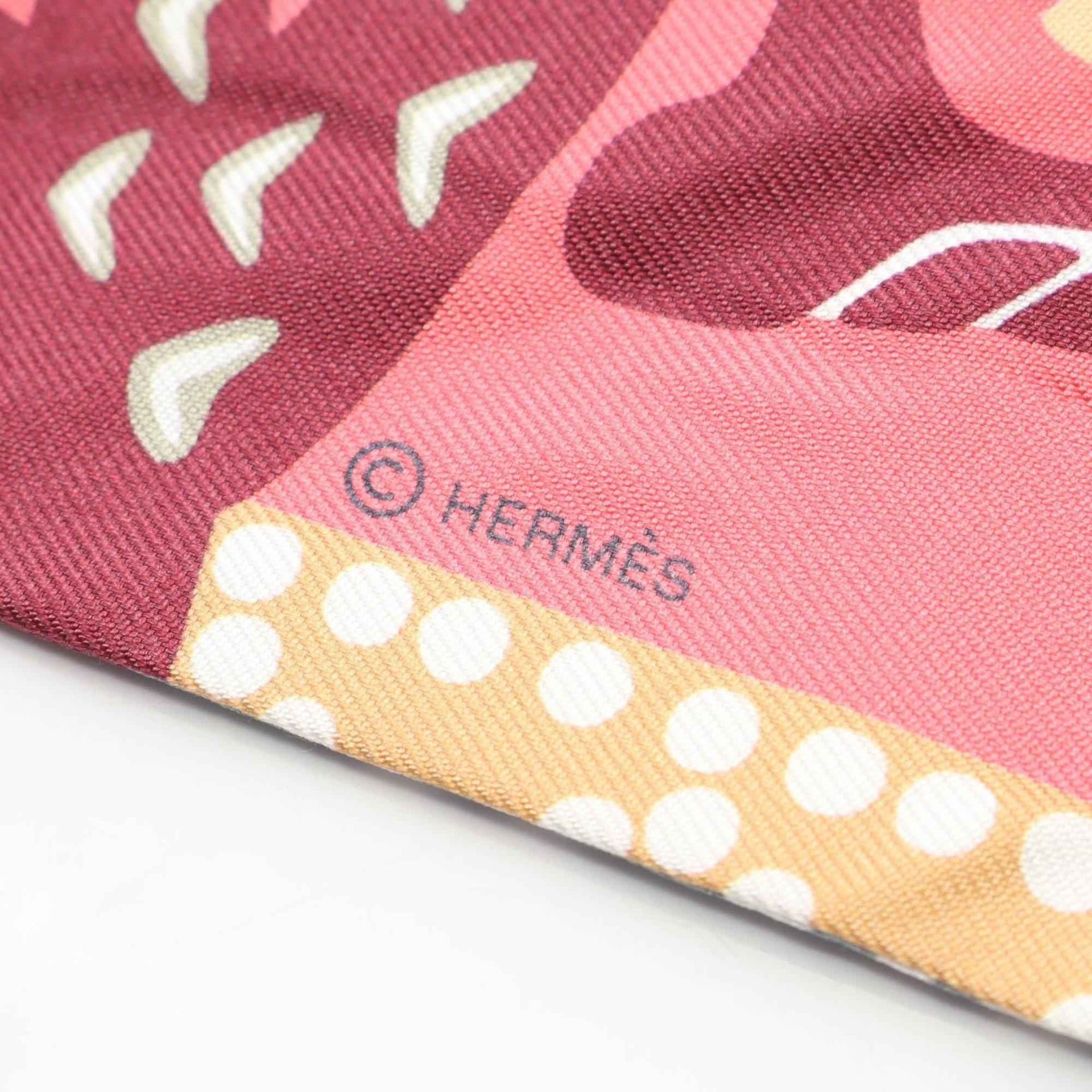 Hermes Hermès Twilly Fantaisie d\'Etriers Silk Scarf for Women in Multicolored Pink