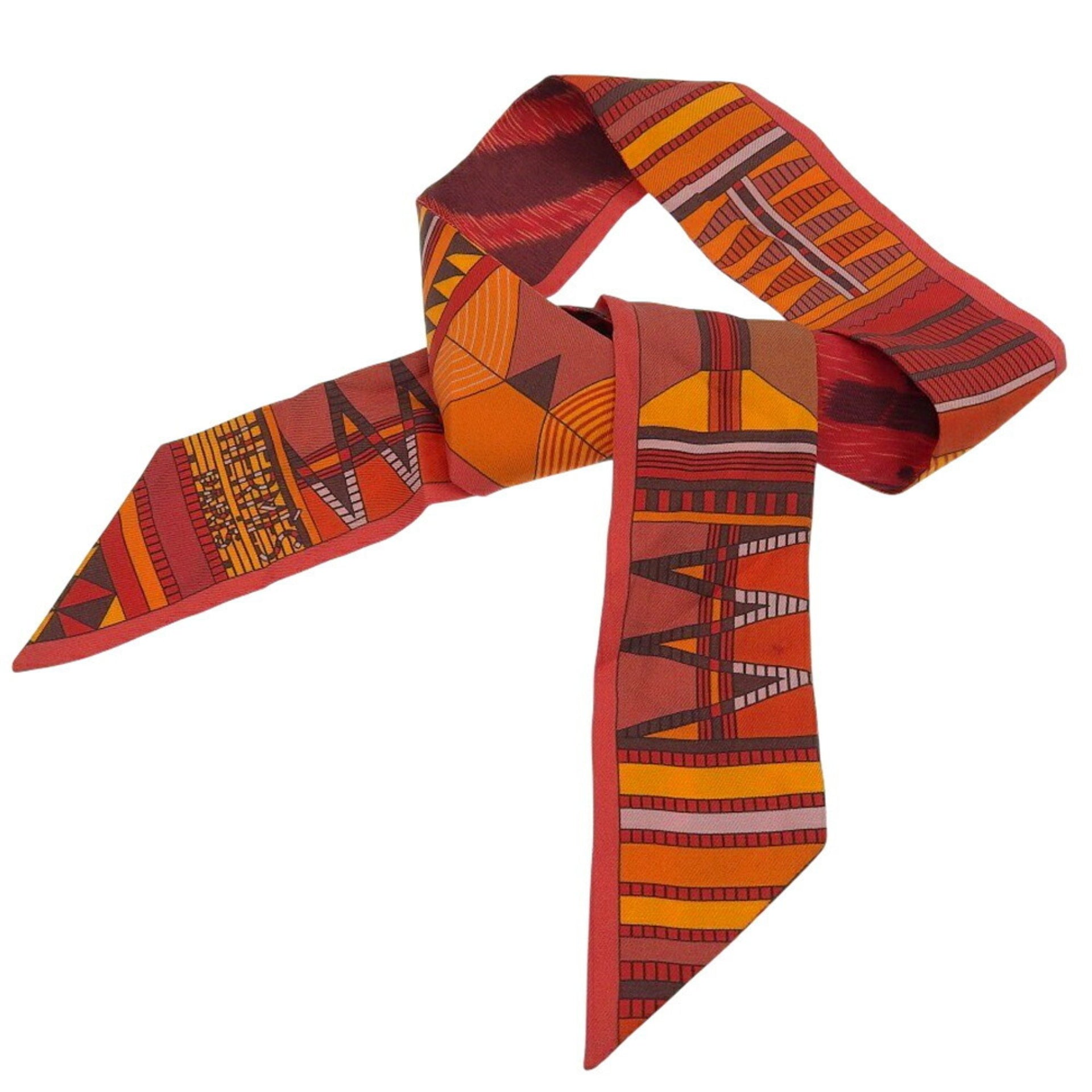 Hermes Hermès Twilly Wild and Camouflage Silk Scarf/Muffler in Orange Red