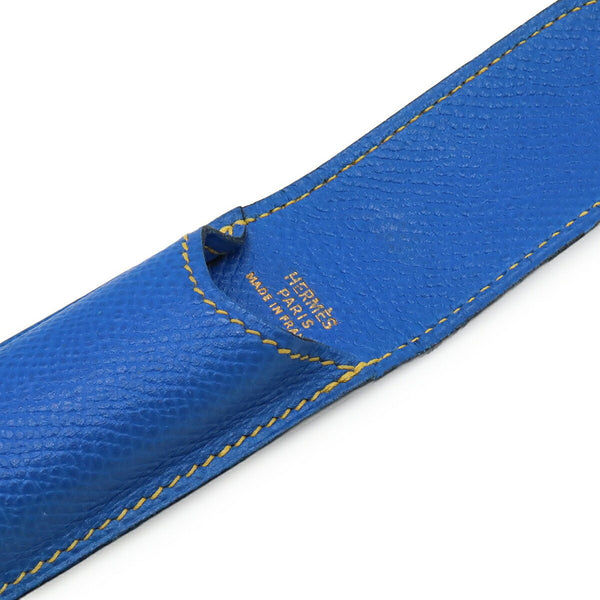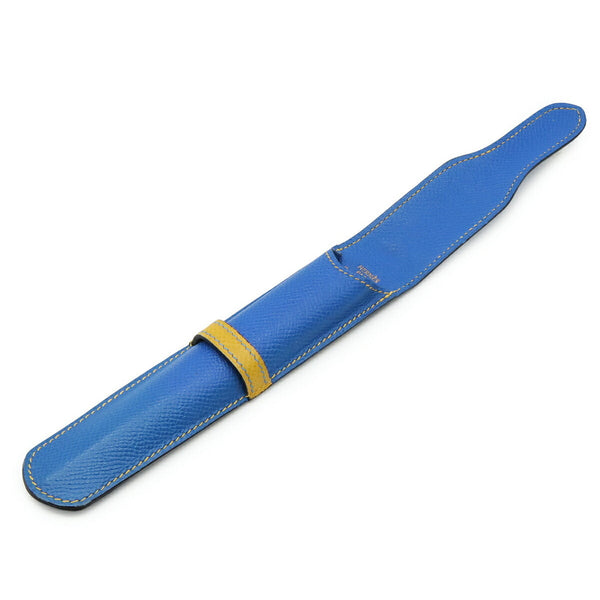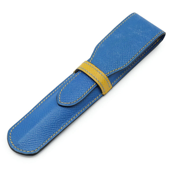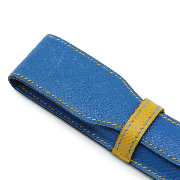 HERMES Hermès Two-Tone Flap Pencil Case in Couchvel Leather, Blue and Yellow, Stamped with A
