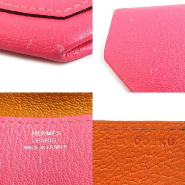 Hermes HERMES Wallet/Coin Case Le Vingt Quatre Leather Pink Orange Silver Women's e60501a