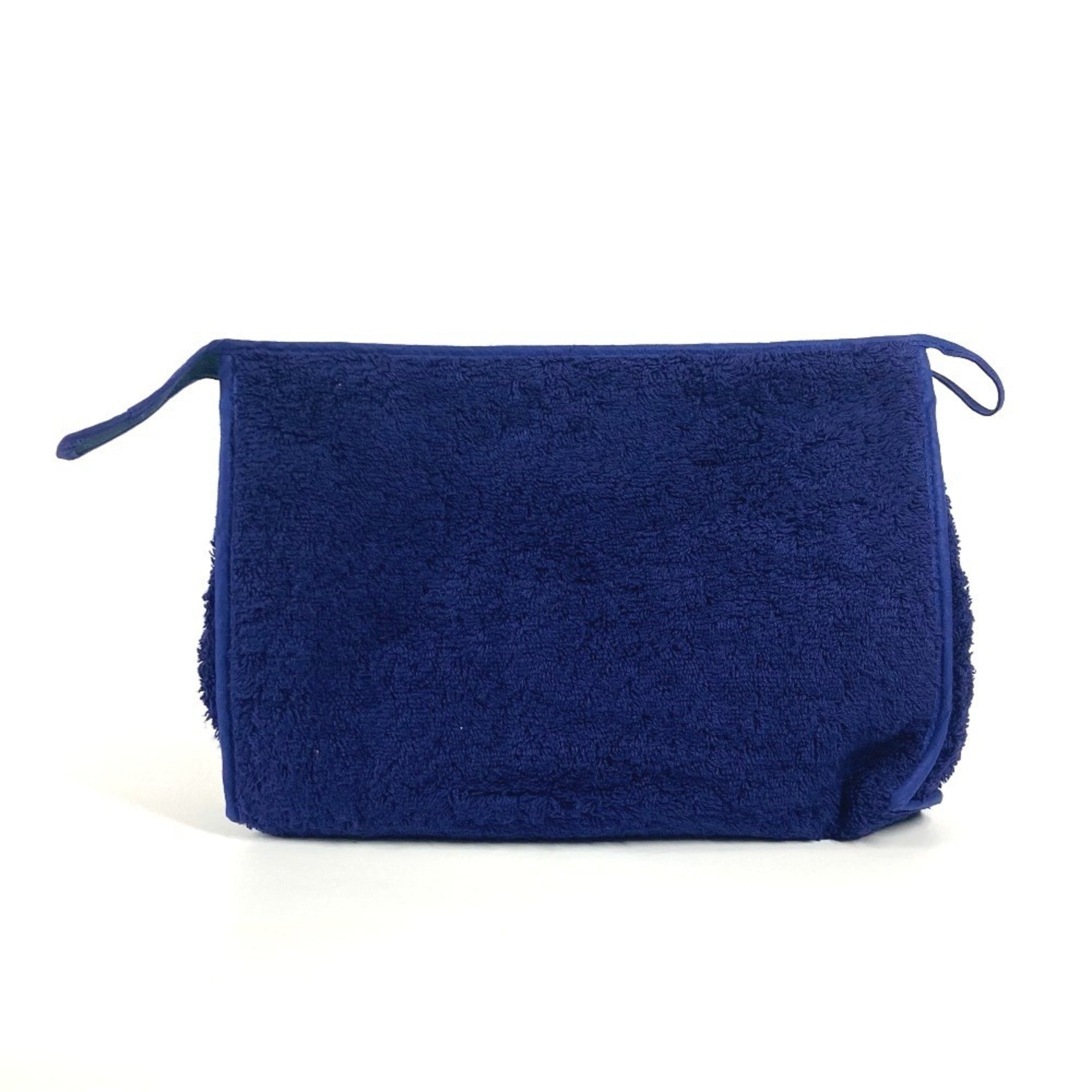 HERMES Horse print pile beach pouch logo clutch bag multi-purpose makeup ladies navy
