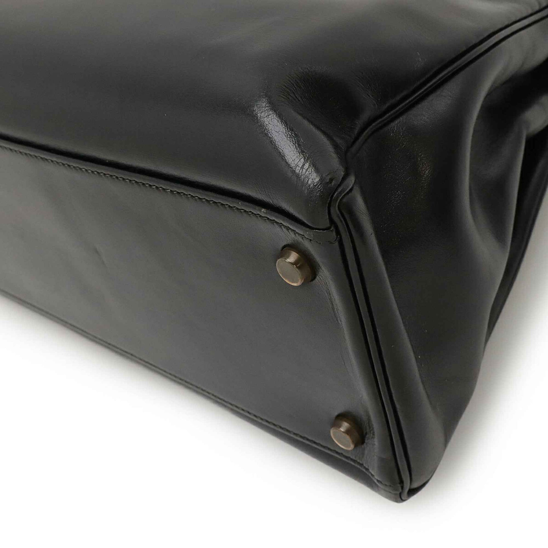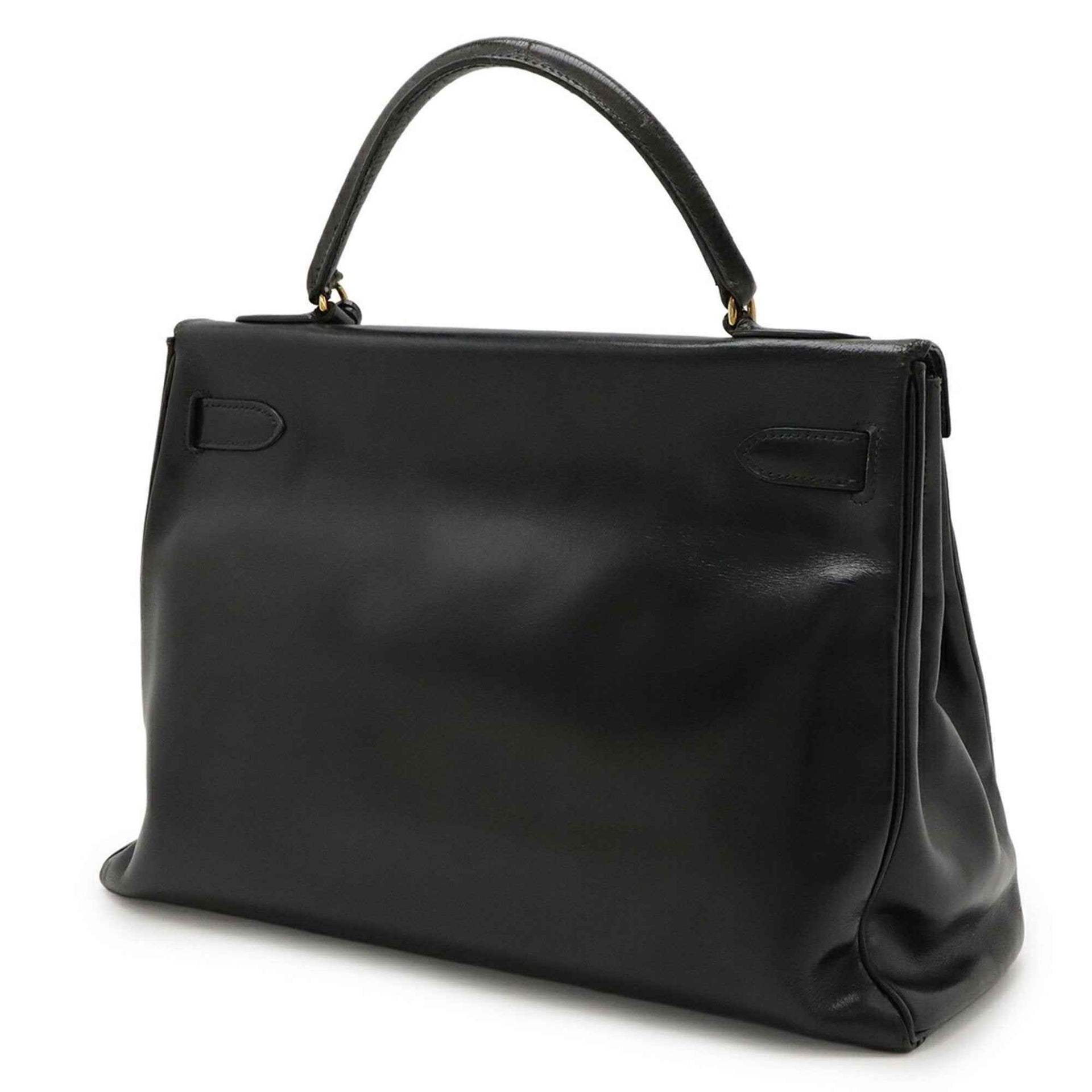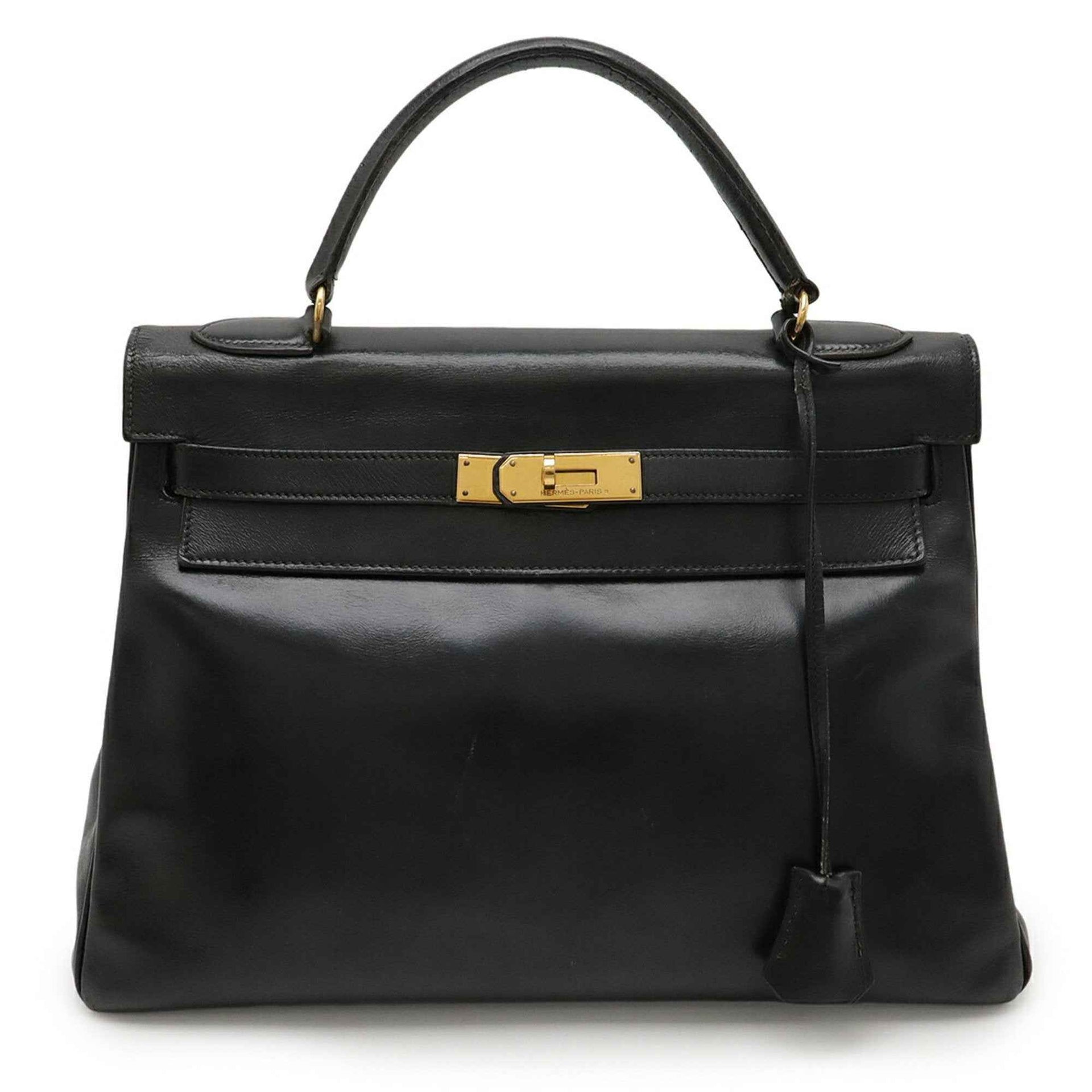 HERMES Kelly 32 Handbag with Inner Stitching, Box Calf Leather Scarf, Black, O-Stamped, Shoulder Strap