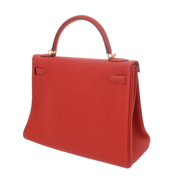 HERMES Kelly 32 Inner Stitching 2WAY Rouge Tomato X Stamp (around 2016) Women\'s Togo Handbag A