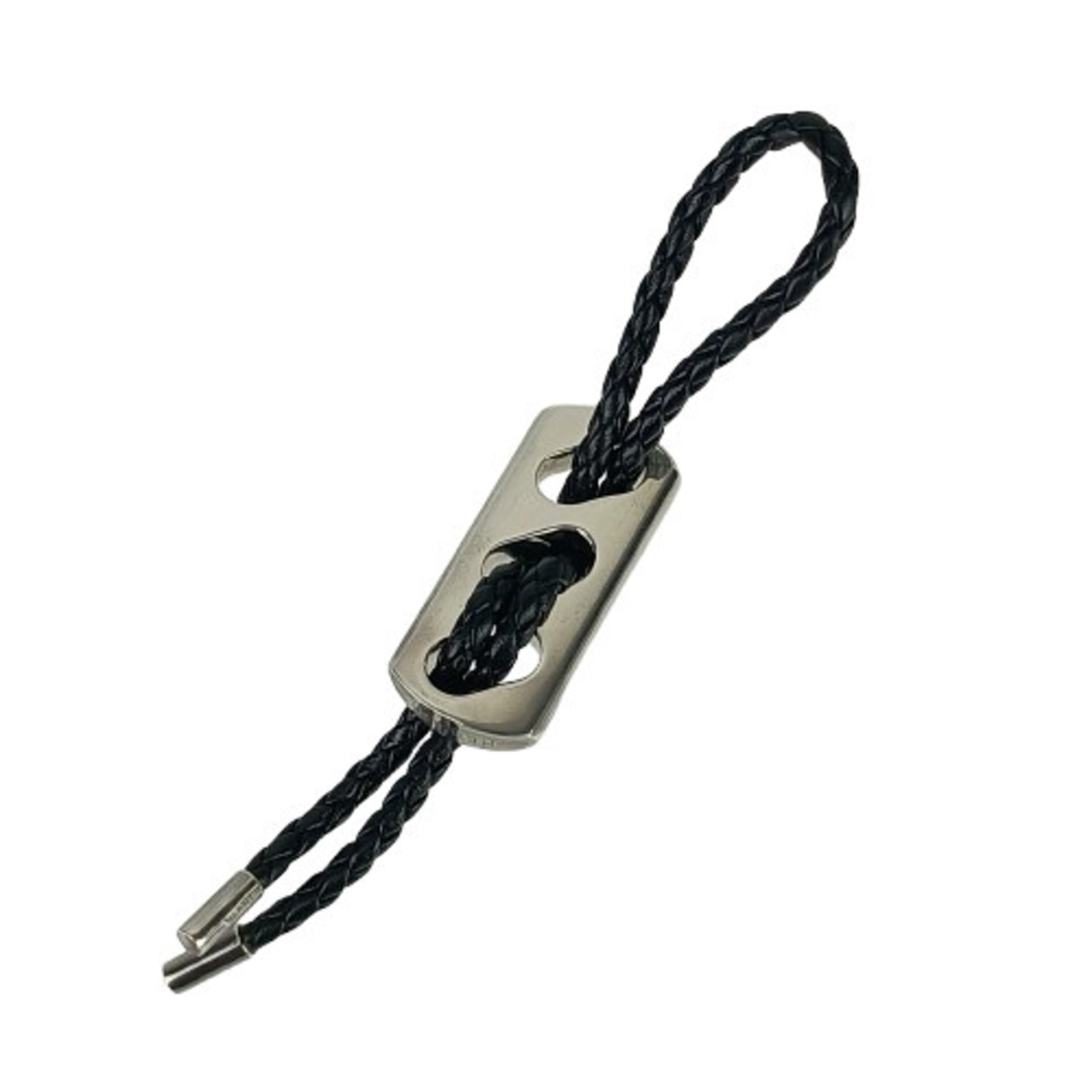 HERMES Keychain Charm - Black Silver Leather Ag925 for Men and Women