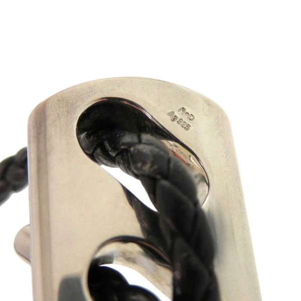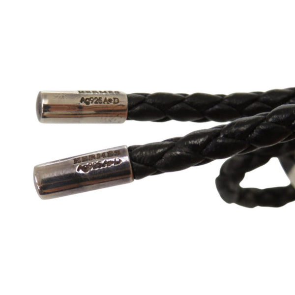 Hermes Leather Bracelet, 925 Sterling Silver, Black with Silver Hardware, 1124 HERMES