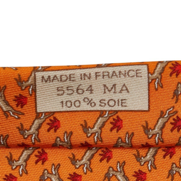 Hermes Lion and Deer Motif Tie Orange Red Beige Silk Men\'s HERMES